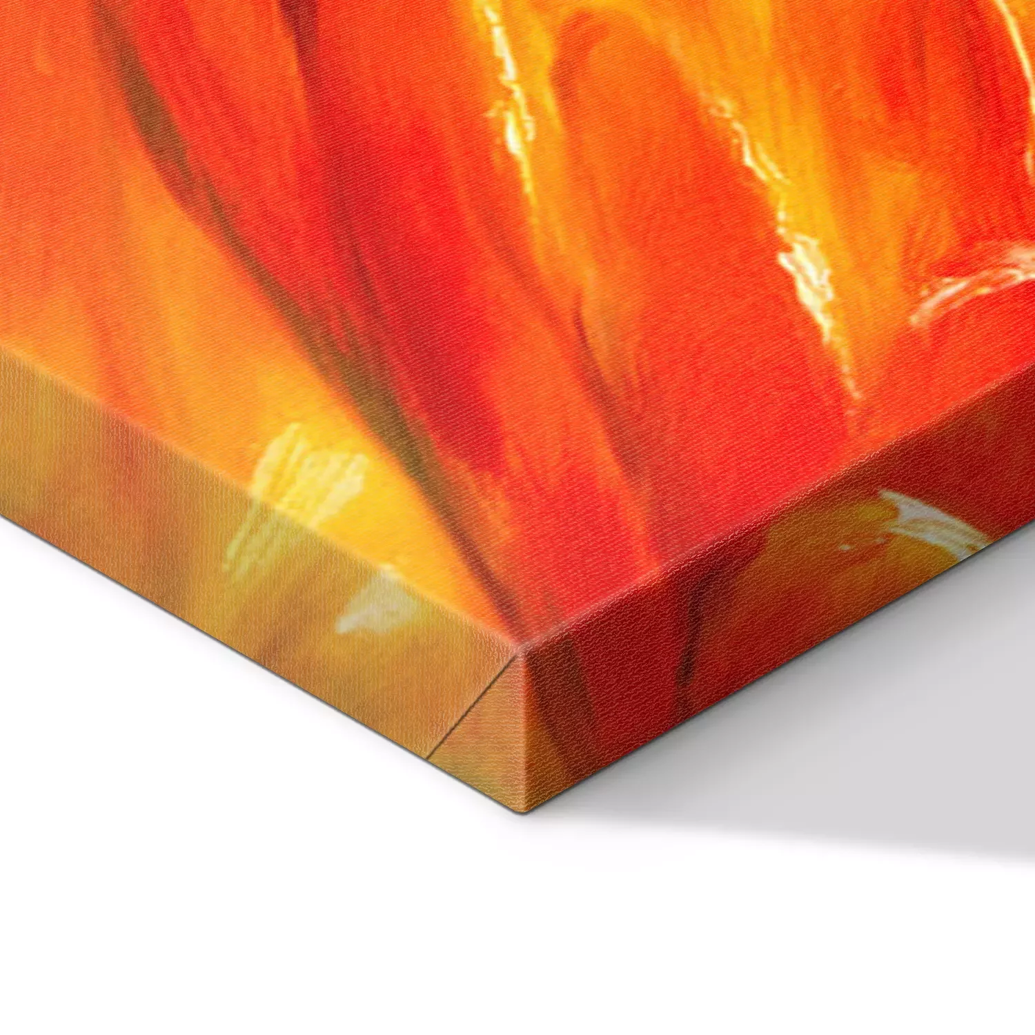 De print wordt aangebracht op hoogwaardig canvas dat op een schildersweefgetouw (spieraam) wordt gespannen. Omdat de print de zijranden bedekt, hoeft het ontwerp niet met een extra kader te worden omlijst. Wij raden ook composities aan die uit meerdere foto's bestaan en zo een coherente compositie vormen.