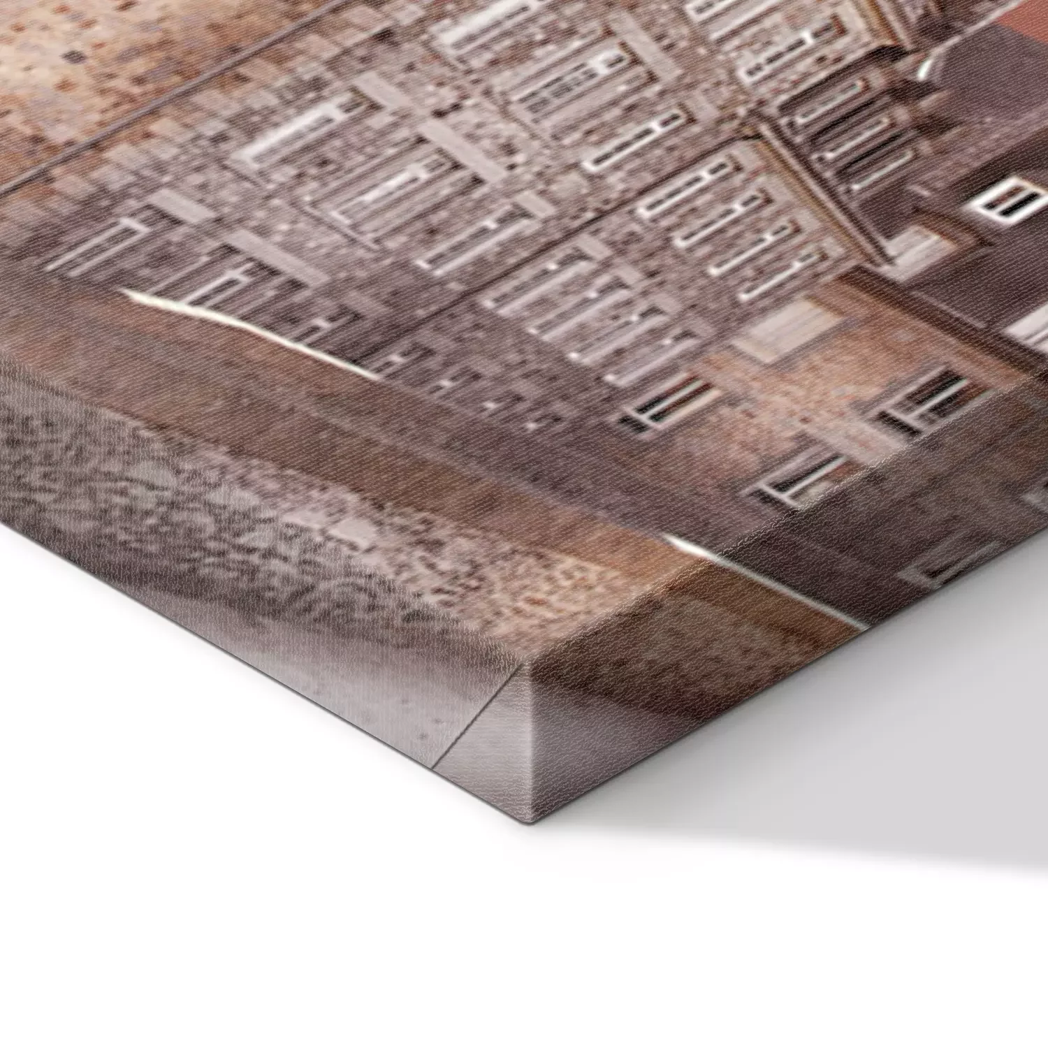 De print wordt aangebracht op hoogwaardig canvas dat op een schildersweefgetouw (spieraam) wordt gespannen. Omdat de print de zijranden bedekt, hoeft het ontwerp niet met een extra kader te worden omlijst. Wij raden ook composities aan die uit meerdere foto's bestaan en zo een coherente compositie vormen.