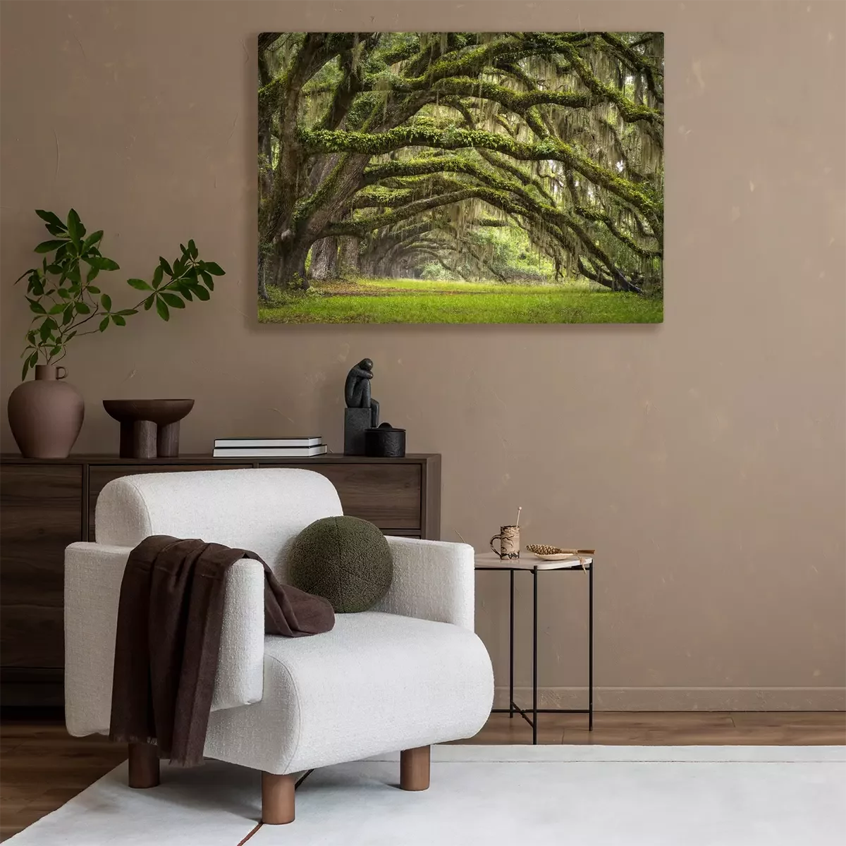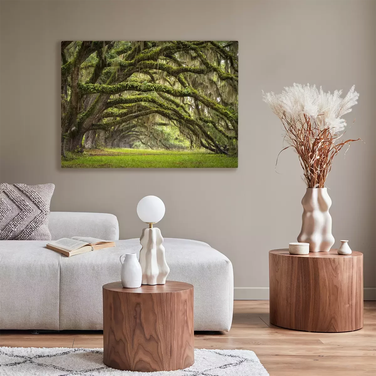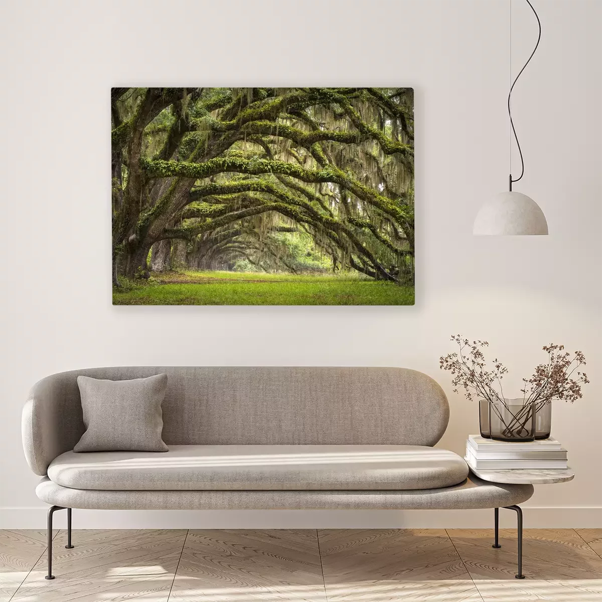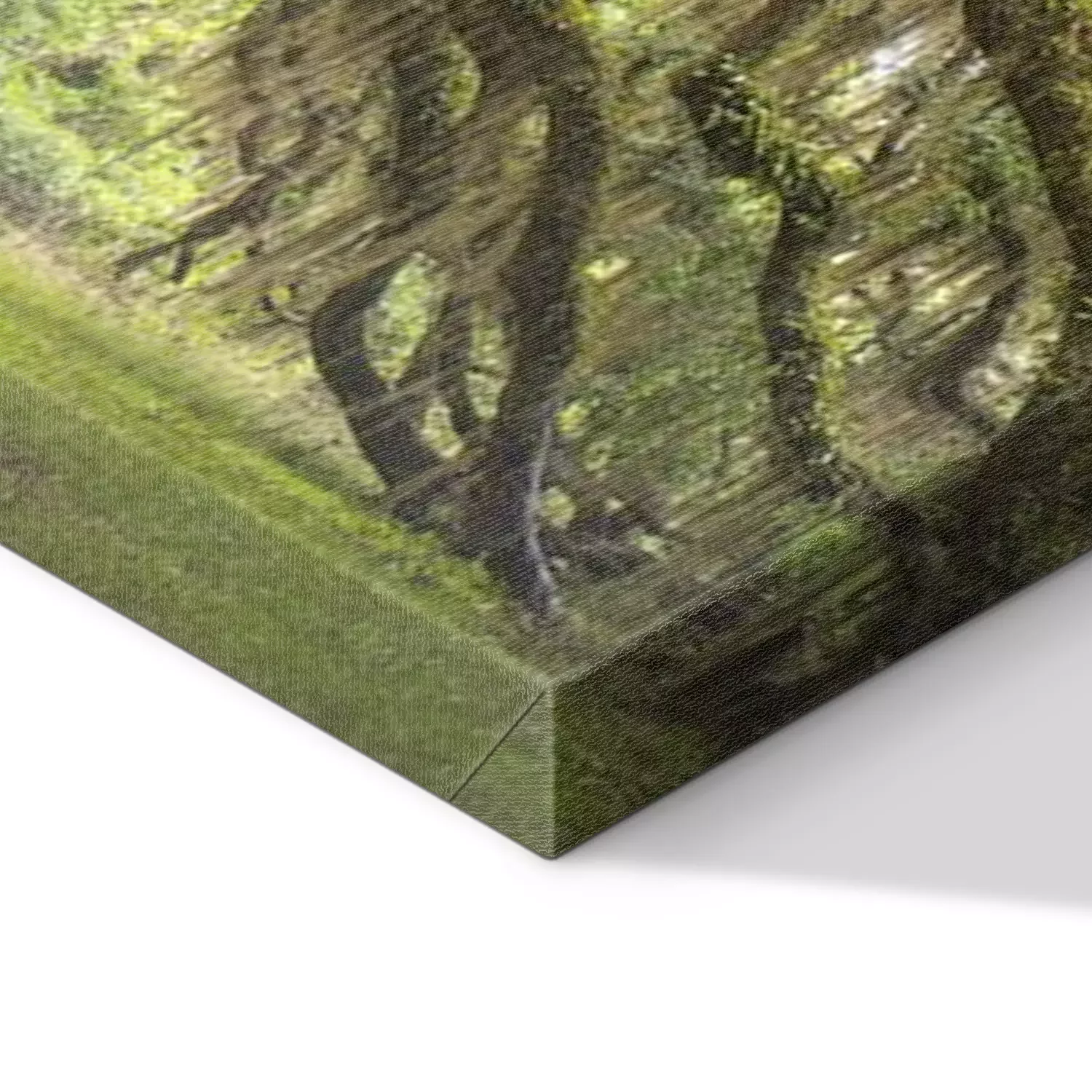 De print wordt aangebracht op hoogwaardig canvas dat op een schildersweefgetouw (spieraam) wordt gespannen. Omdat de print de zijranden bedekt, hoeft het ontwerp niet met een extra kader te worden omlijst. Wij raden ook composities aan die uit meerdere foto's bestaan en zo een coherente compositie vormen.