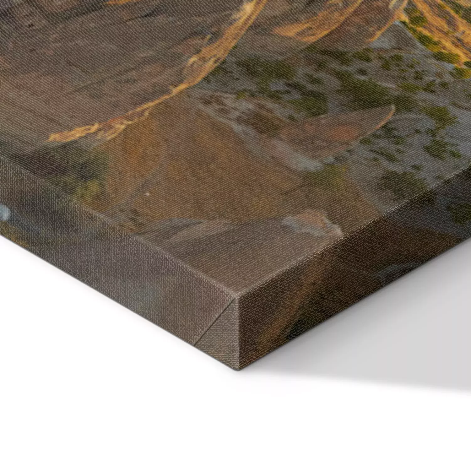 De print wordt aangebracht op hoogwaardig canvas dat op een schildersweefgetouw (spieraam) wordt gespannen. Omdat de print de zijranden bedekt, hoeft het ontwerp niet met een extra kader te worden omlijst. Wij raden ook composities aan die uit meerdere foto's bestaan en zo een coherente compositie vormen.