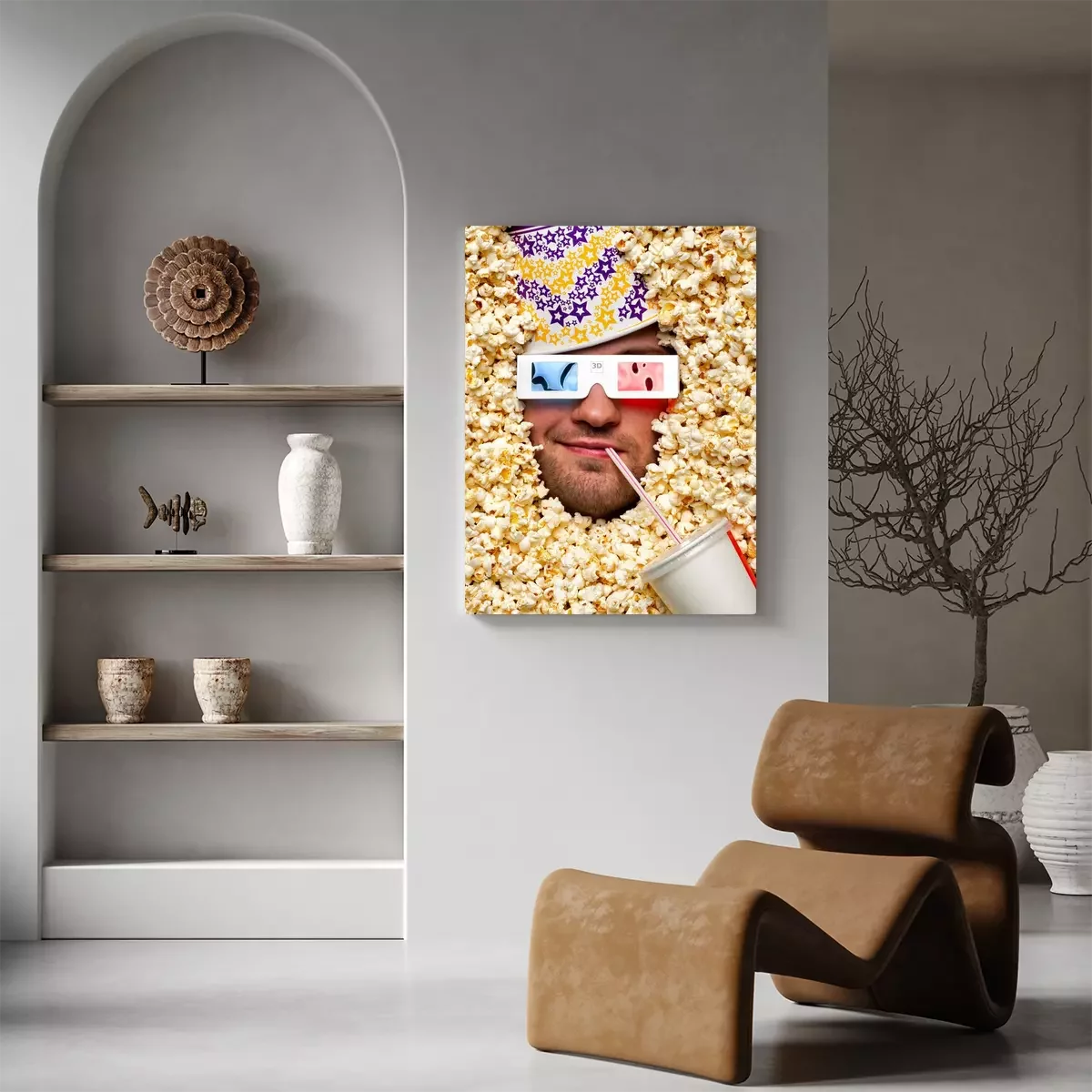 Canvas: Gezicht in popcorn kijken naar 3D film