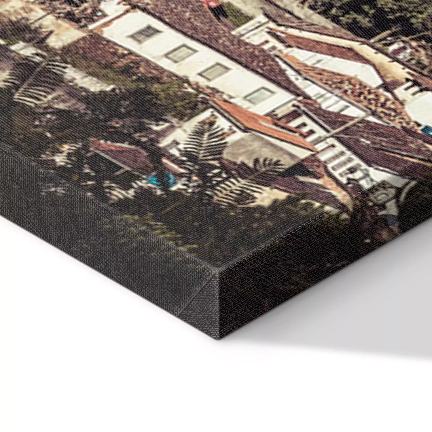 De print wordt aangebracht op hoogwaardig canvas dat op een schildersweefgetouw (spieraam) wordt gespannen. Omdat de print de zijranden bedekt, hoeft het ontwerp niet met een extra kader te worden omlijst. Wij raden ook composities aan die uit meerdere foto's bestaan en zo een coherente compositie vormen.