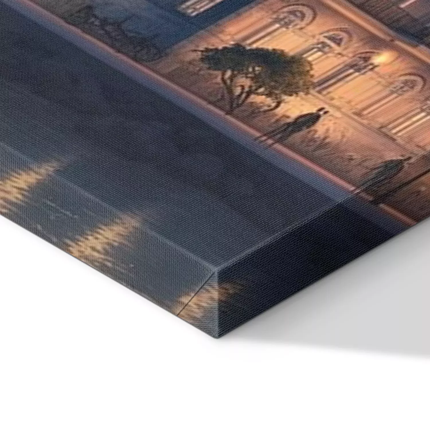 De print wordt aangebracht op hoogwaardig canvas dat op een schildersweefgetouw (spieraam) wordt gespannen. Omdat de print de zijranden bedekt, hoeft het ontwerp niet met een extra kader te worden omlijst. Wij raden ook composities aan die uit meerdere foto's bestaan en zo een coherente compositie vormen.