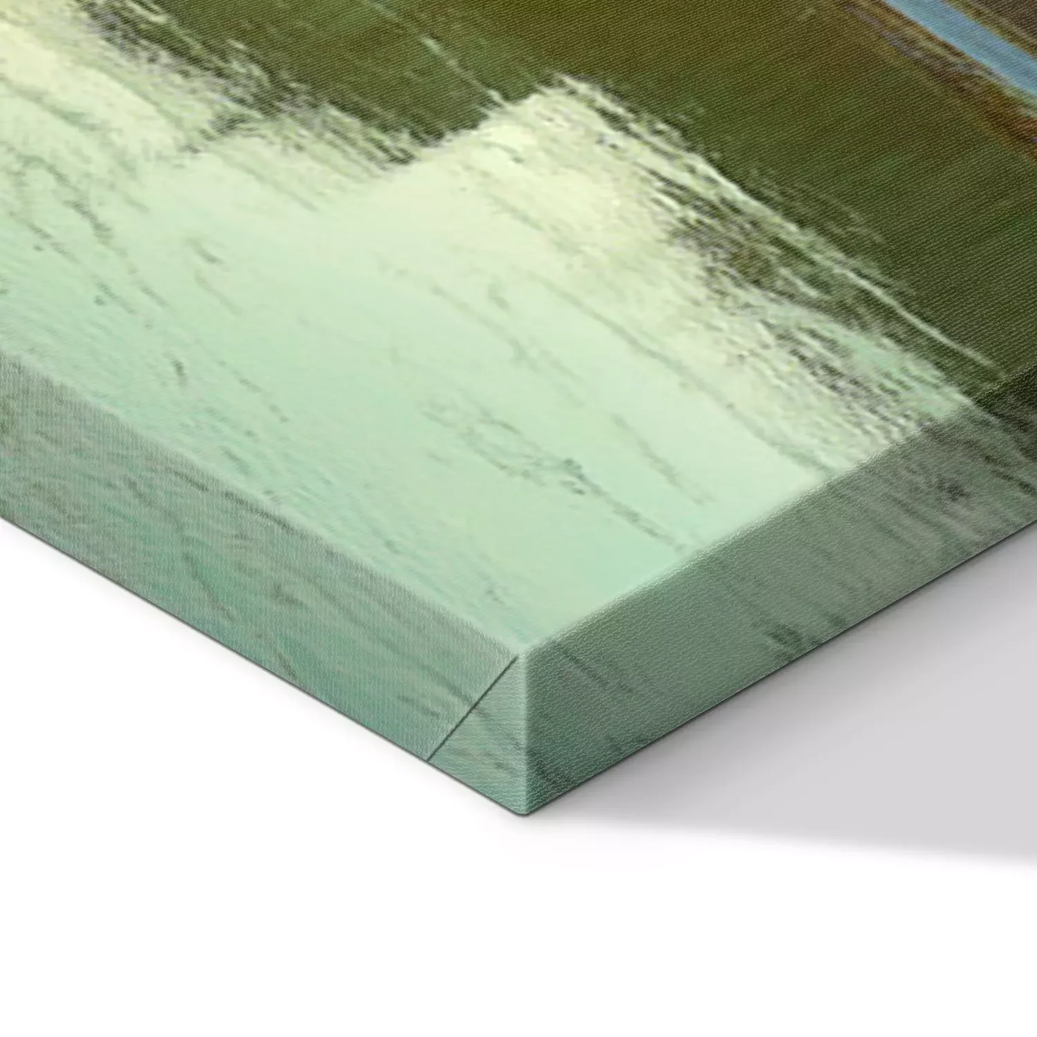 De print wordt aangebracht op hoogwaardig canvas dat op een schildersweefgetouw (spieraam) wordt gespannen. Omdat de print de zijranden bedekt, hoeft het ontwerp niet met een extra kader te worden omlijst. Wij raden ook composities aan die uit meerdere foto's bestaan en zo een coherente compositie vormen.
