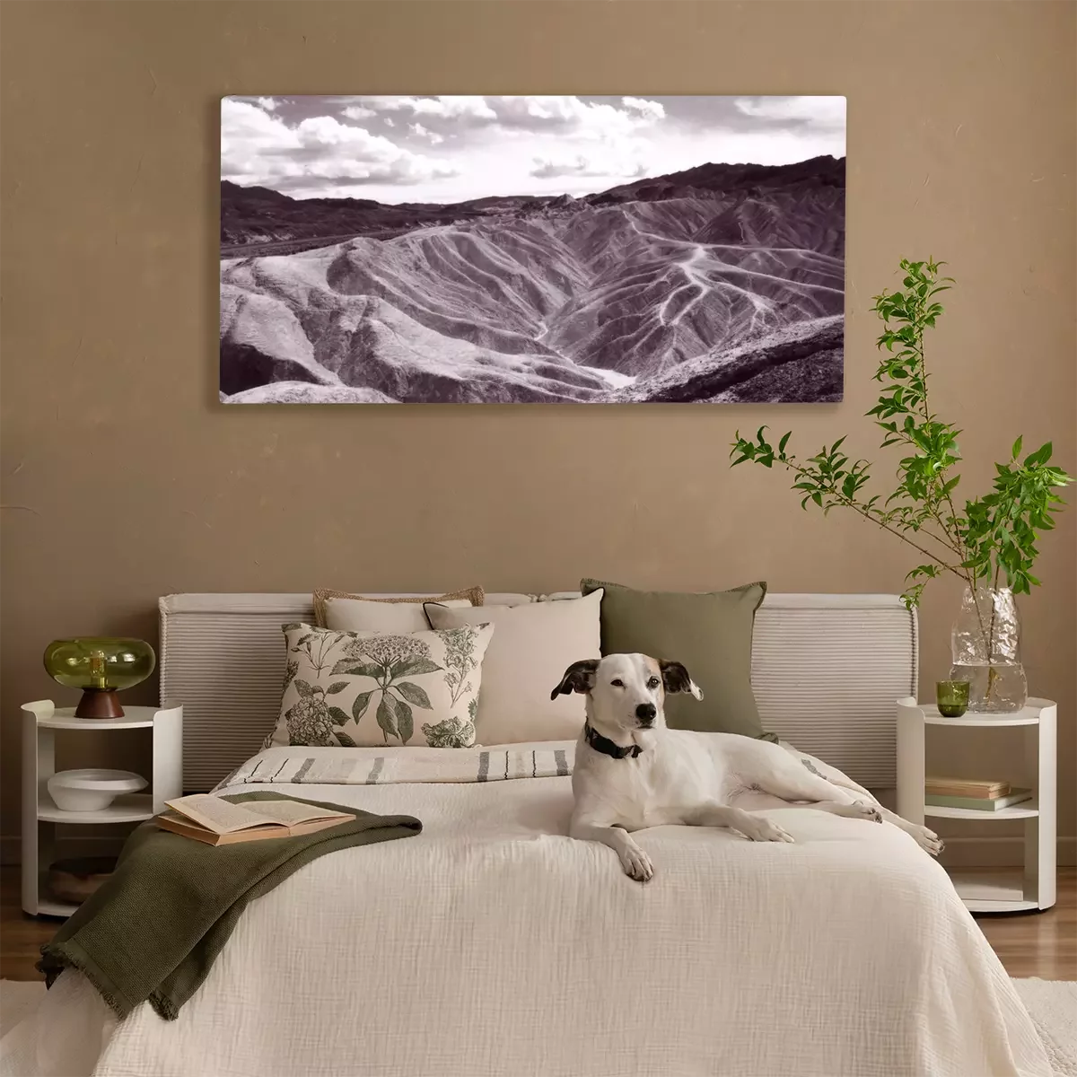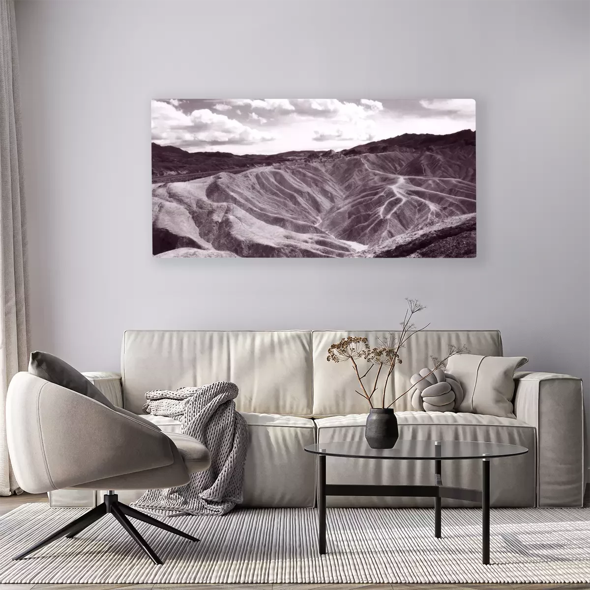De print wordt aangebracht op hoogwaardig canvas dat op een schildersweefgetouw (spieraam) wordt gespannen. Omdat de print de zijranden bedekt, hoeft het ontwerp niet met een extra kader te worden omlijst. Wij raden ook composities aan die uit meerdere foto's bestaan en zo een coherente compositie vormen.