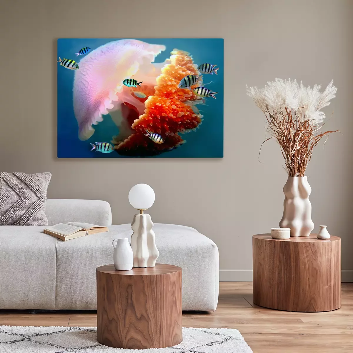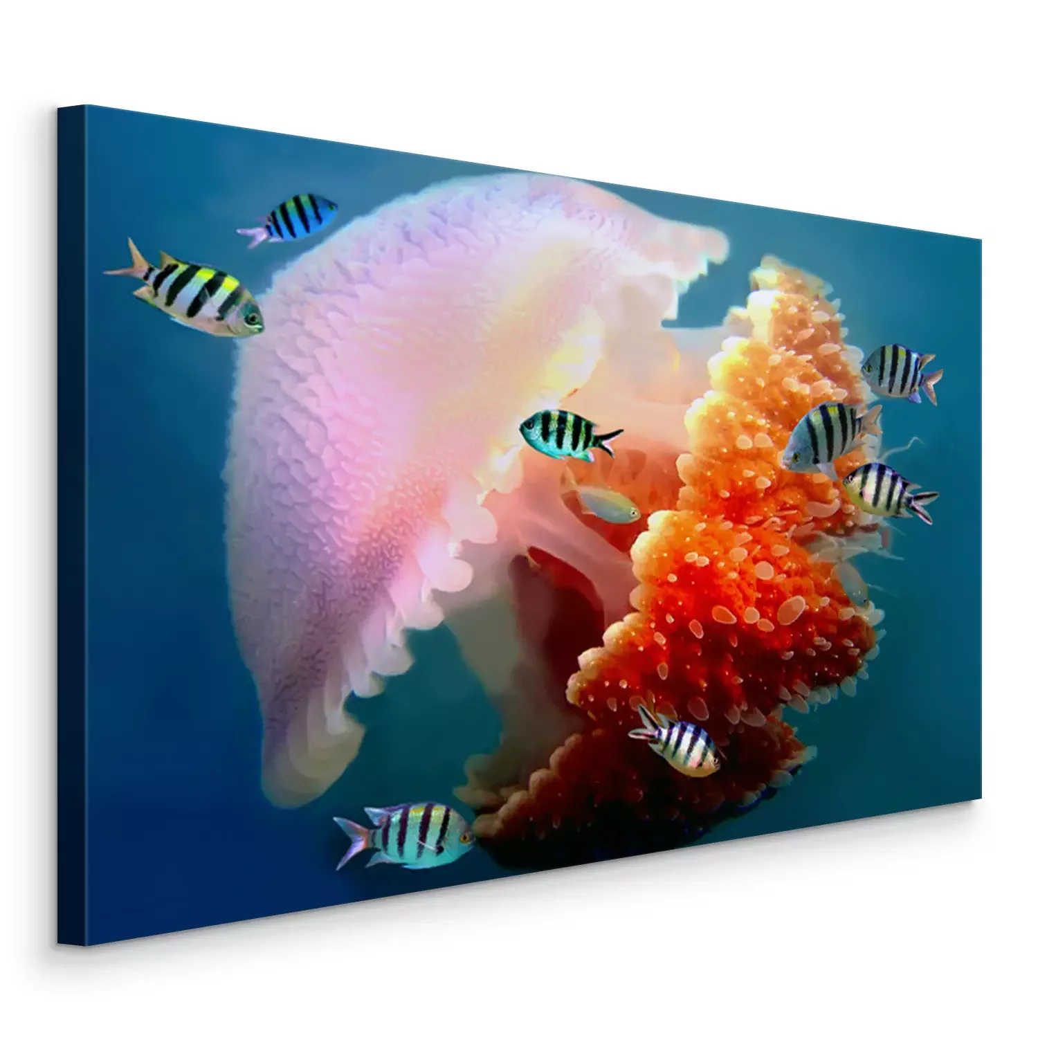 Canvas gigantische kwallen zwemmen met tentakels volgende onderwater