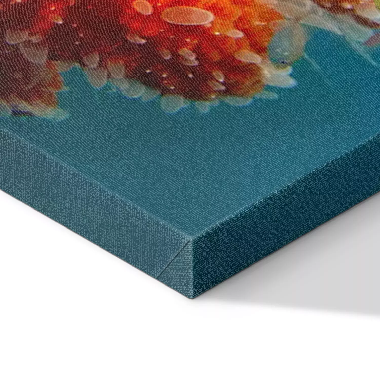 De print wordt aangebracht op hoogwaardig canvas dat op een schildersweefgetouw (spieraam) wordt gespannen. Omdat de print de zijranden bedekt, hoeft het ontwerp niet met een extra kader te worden omlijst. Wij raden ook composities aan die uit meerdere foto's bestaan en zo een coherente compositie vormen.
