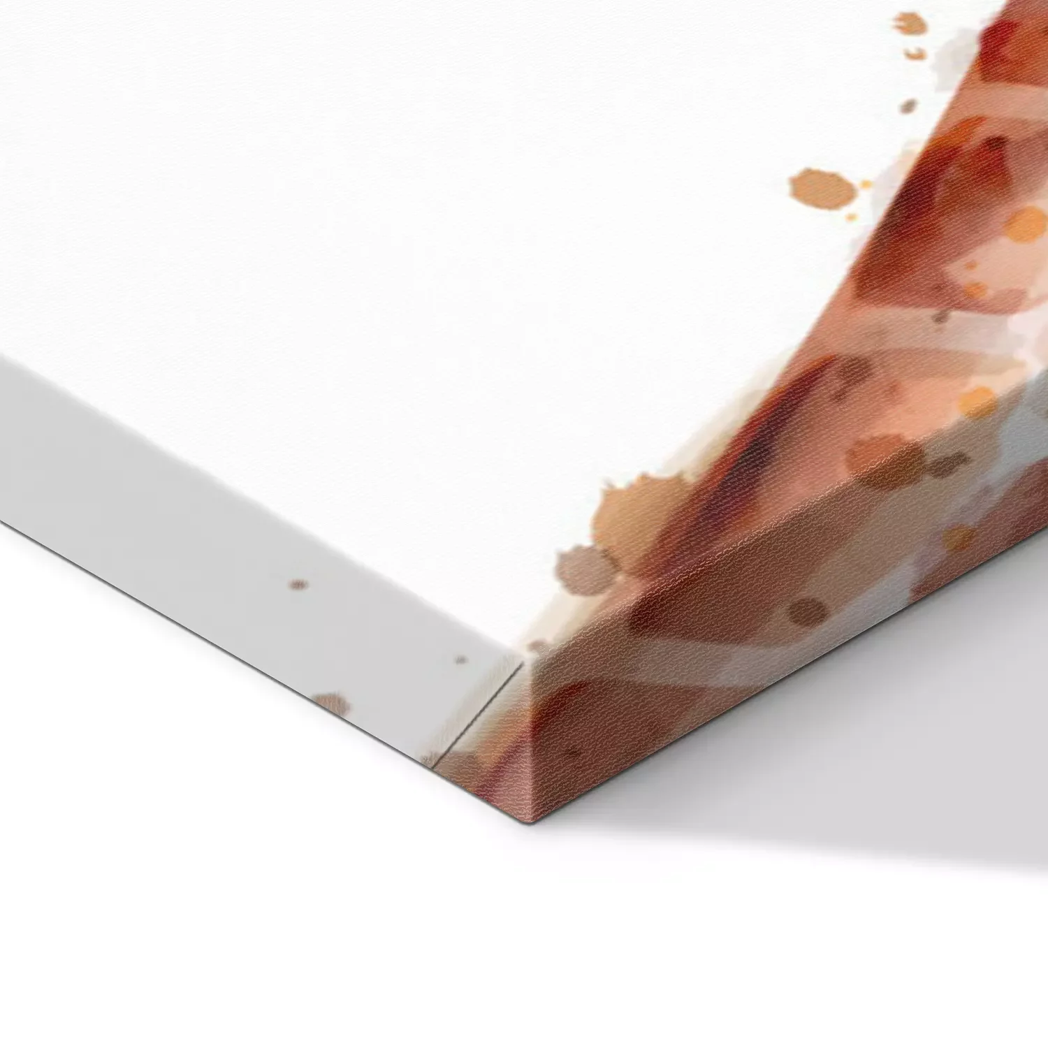 De print wordt aangebracht op hoogwaardig canvas dat op een schildersweefgetouw (spieraam) wordt gespannen. Omdat de print de zijranden bedekt, hoeft het ontwerp niet met een extra kader te worden omlijst. Wij raden ook composities aan die uit meerdere foto's bestaan en zo een coherente compositie vormen.