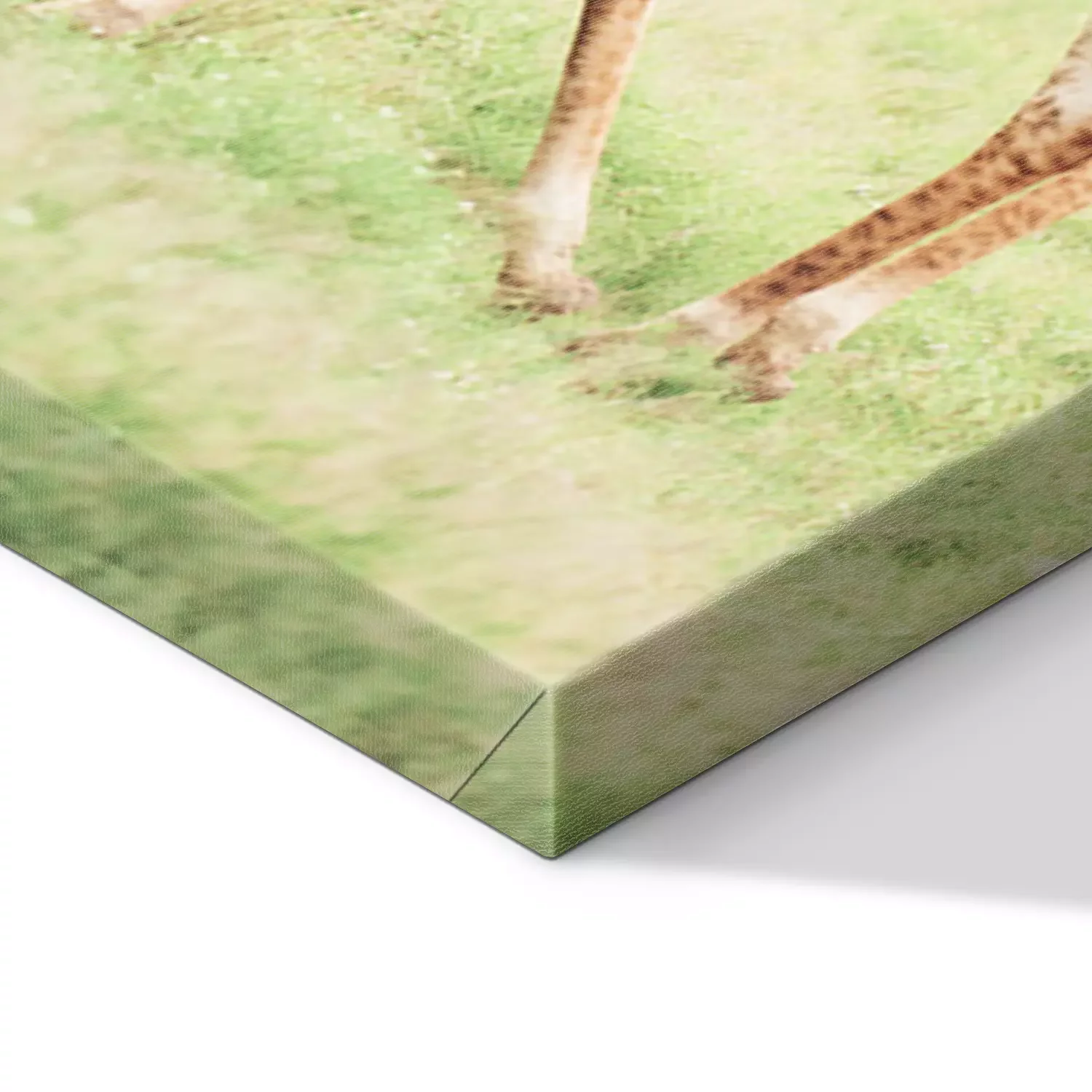 De print wordt aangebracht op hoogwaardig canvas dat op een schildersweefgetouw (spieraam) wordt gespannen. Omdat de print de zijranden bedekt, hoeft het ontwerp niet met een extra kader te worden omlijst. Wij raden ook composities aan die uit meerdere foto's bestaan en zo een coherente compositie vormen.