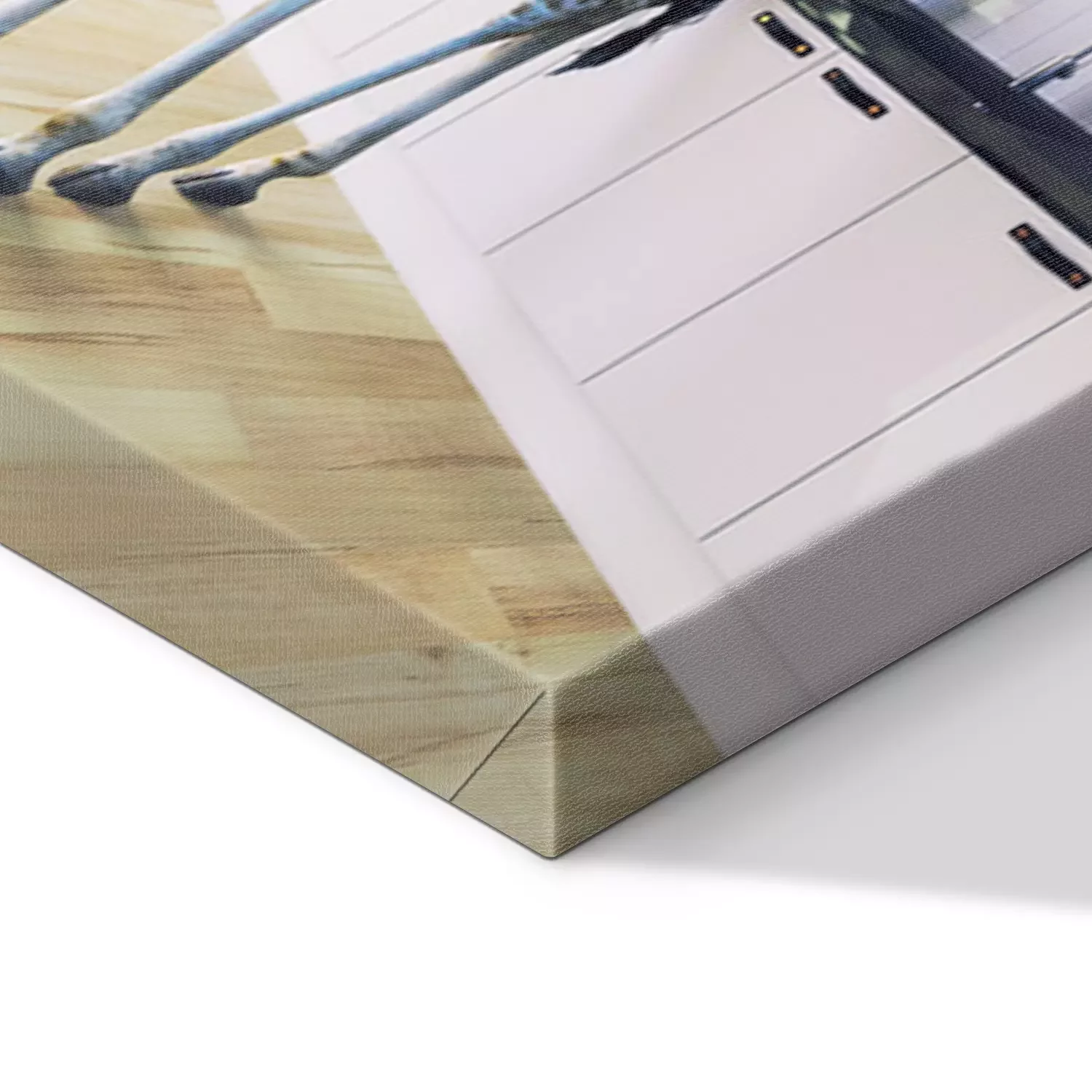De print wordt aangebracht op hoogwaardig canvas dat op een schildersweefgetouw (spieraam) wordt gespannen. Omdat de print de zijranden bedekt, hoeft het ontwerp niet met een extra kader te worden omlijst. Wij raden ook composities aan die uit meerdere foto's bestaan en zo een coherente compositie vormen.