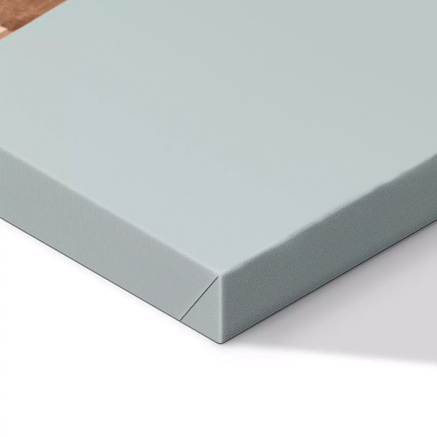 De print wordt aangebracht op hoogwaardig canvas dat op een schildersweefgetouw (spieraam) wordt gespannen. Omdat de print de zijranden bedekt, hoeft het ontwerp niet met een extra kader te worden omlijst. Wij raden ook composities aan die uit meerdere foto's bestaan en zo een coherente compositie vormen.