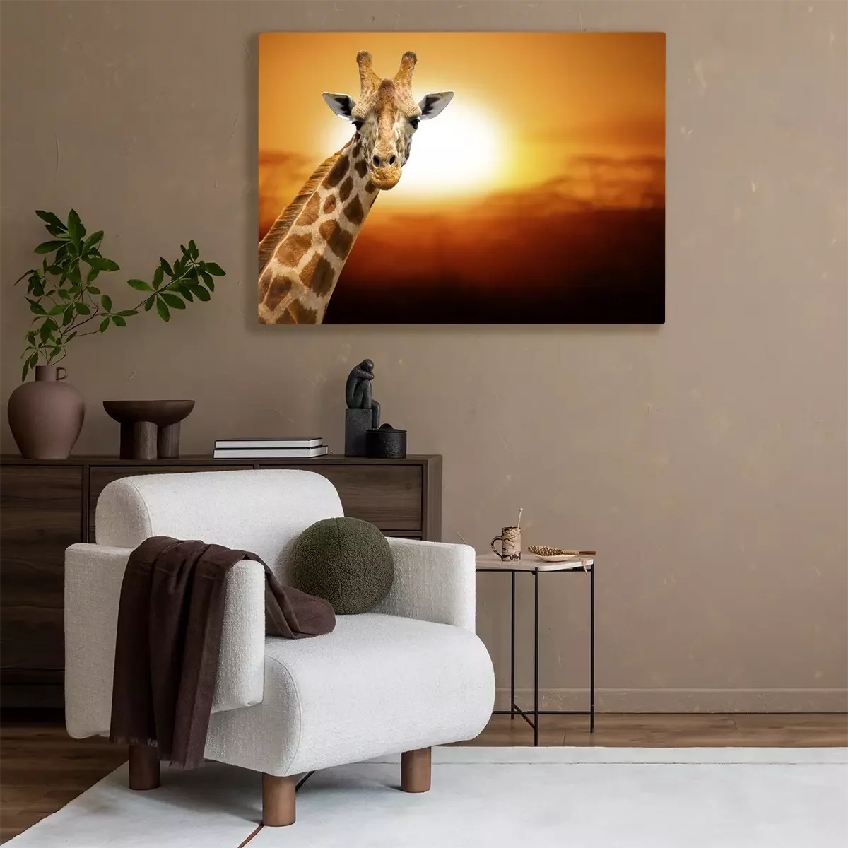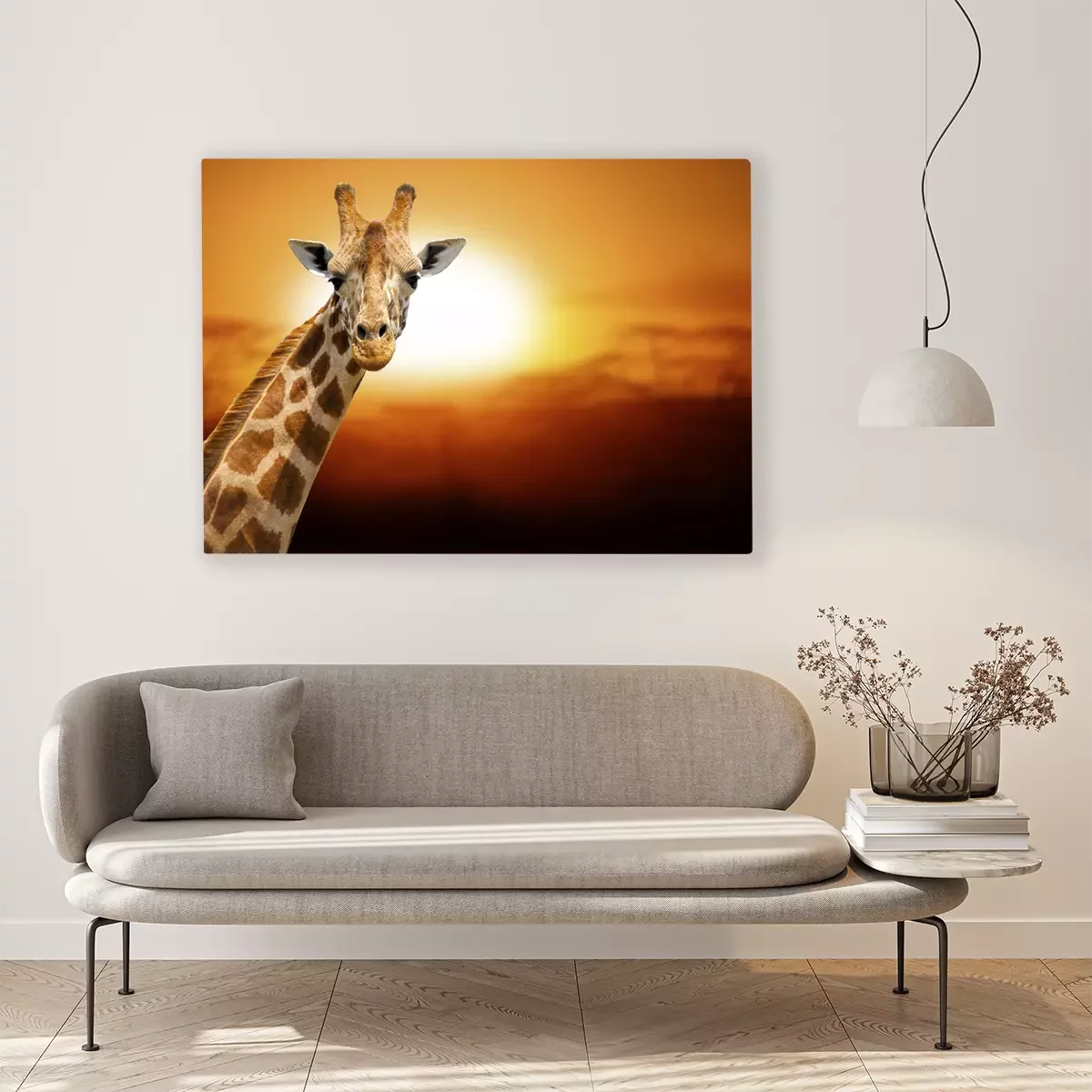 Canvas: Giraf tegen de achtergrond van de zonsondergang