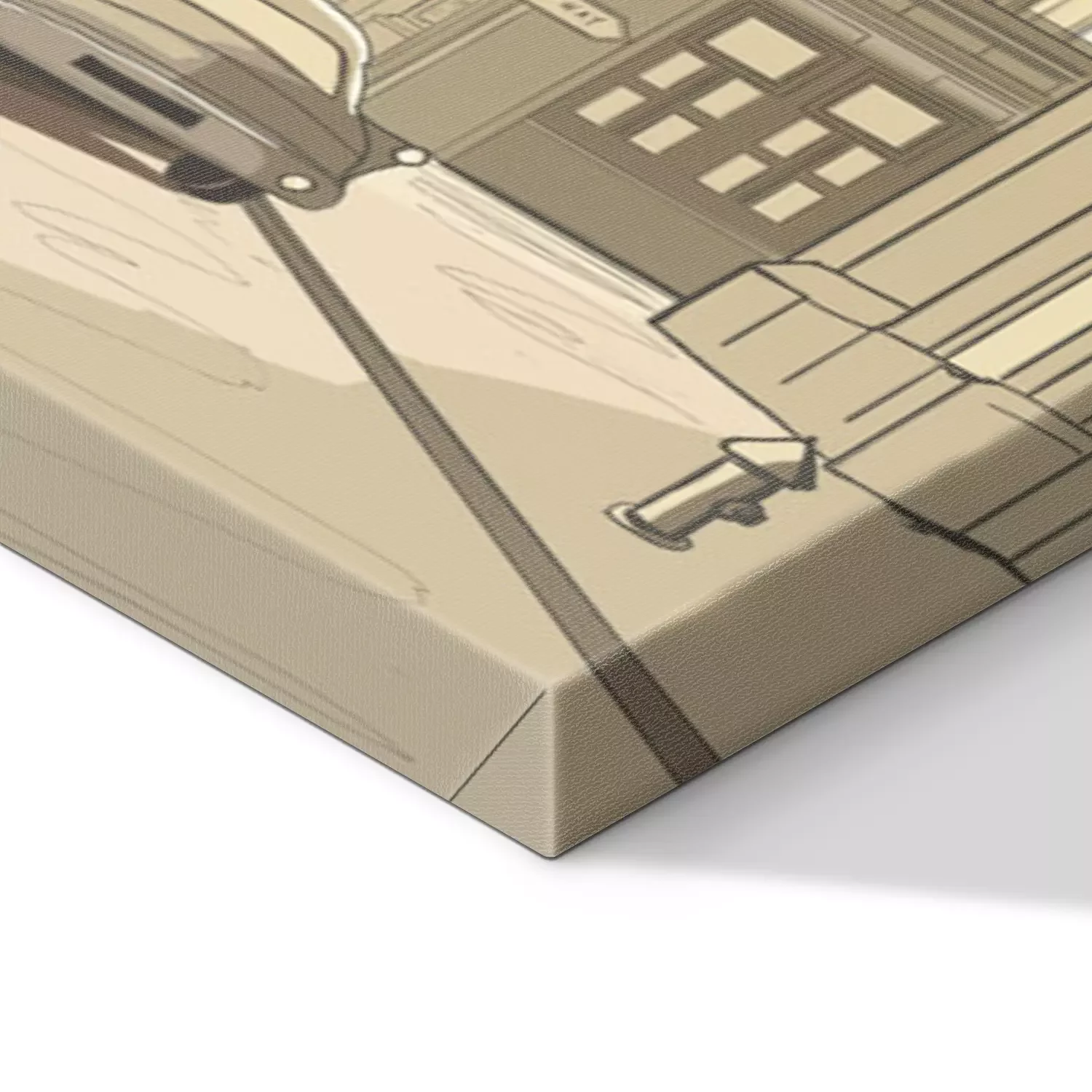 De print wordt aangebracht op hoogwaardig canvas dat op een schildersweefgetouw (spieraam) wordt gespannen. Omdat de print de zijranden bedekt, hoeft het ontwerp niet met een extra kader te worden omlijst. Wij raden ook composities aan die uit meerdere foto's bestaan en zo een coherente compositie vormen.