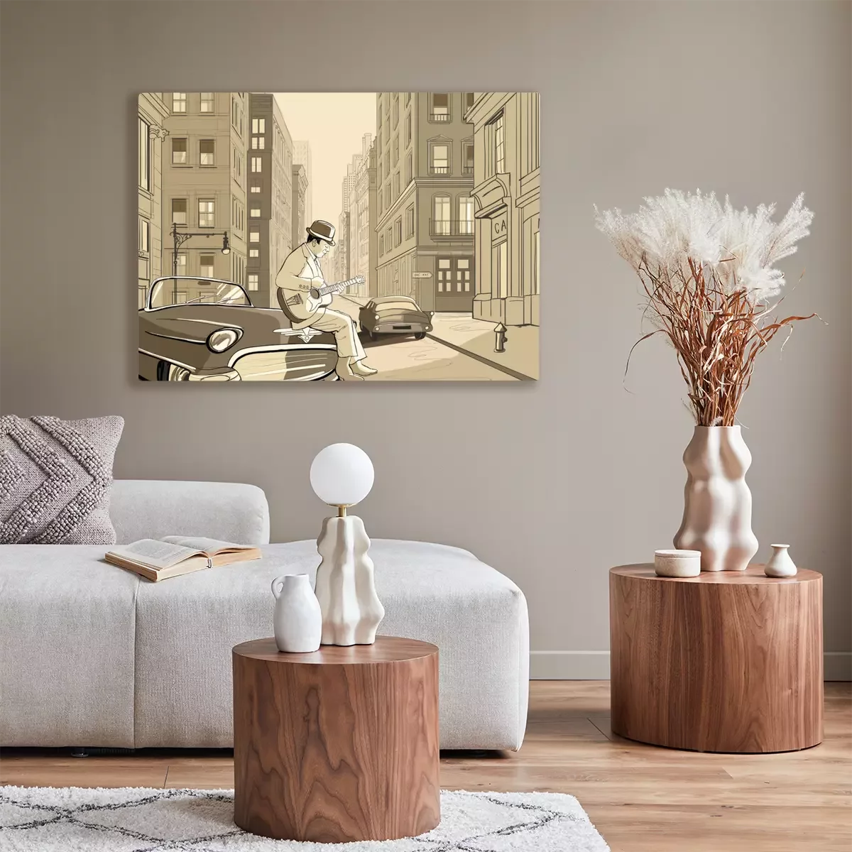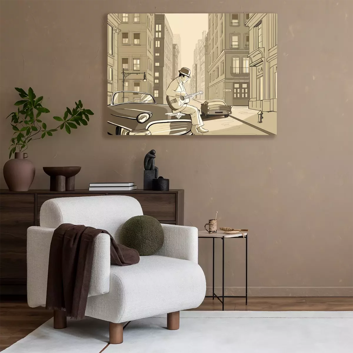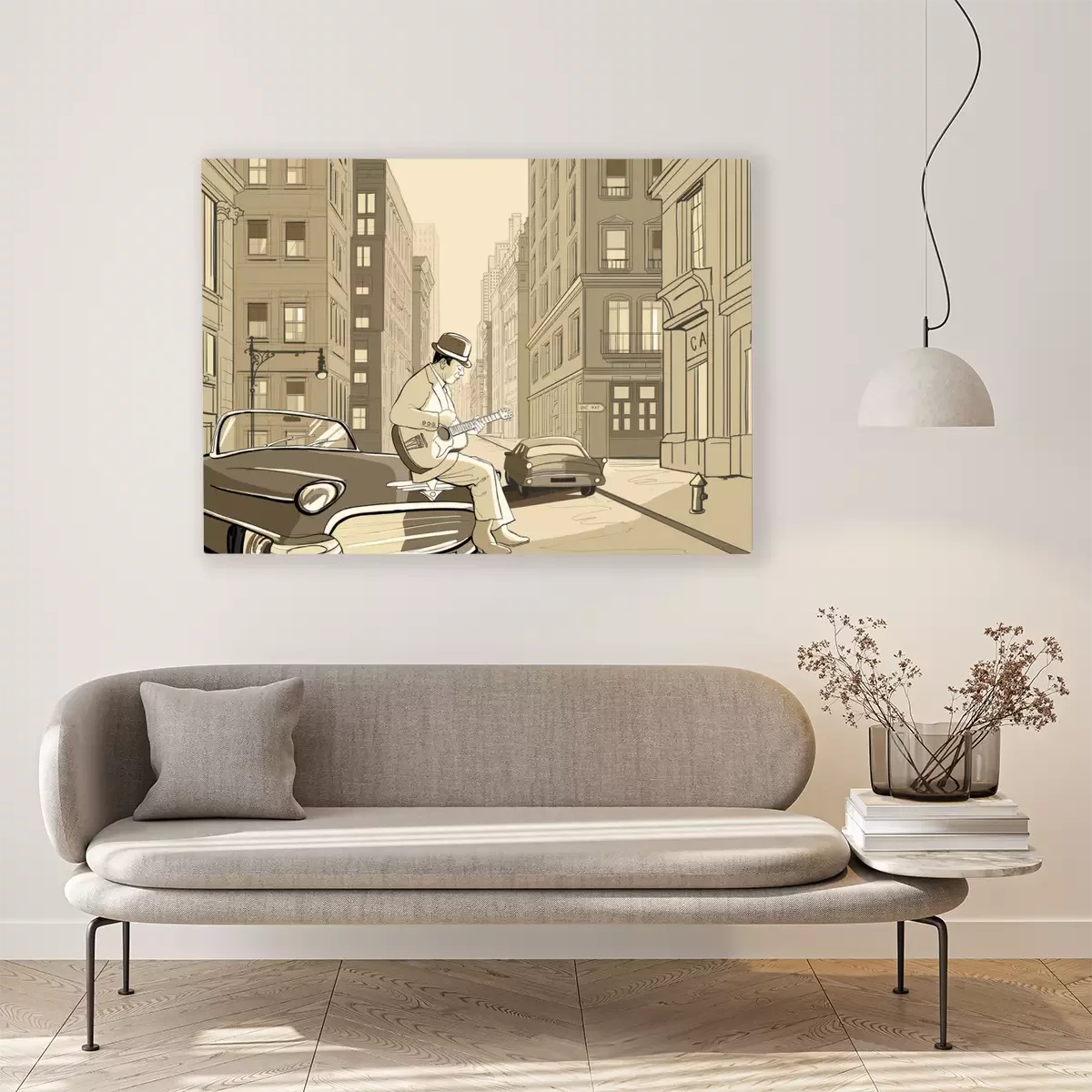 Canvas: gitarist in een oude straat van New york