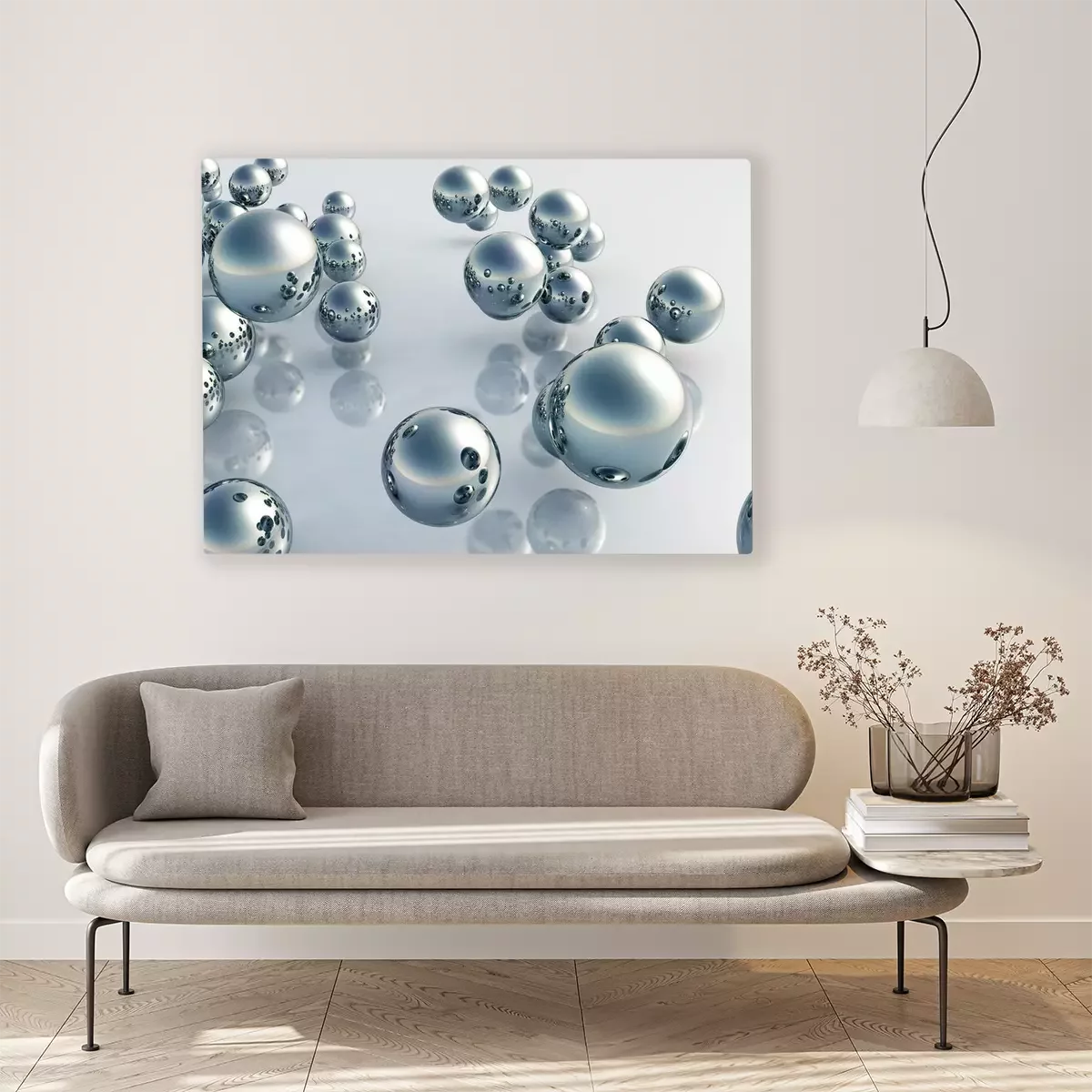 Canvas: Glanzende 3D-ballen op glas