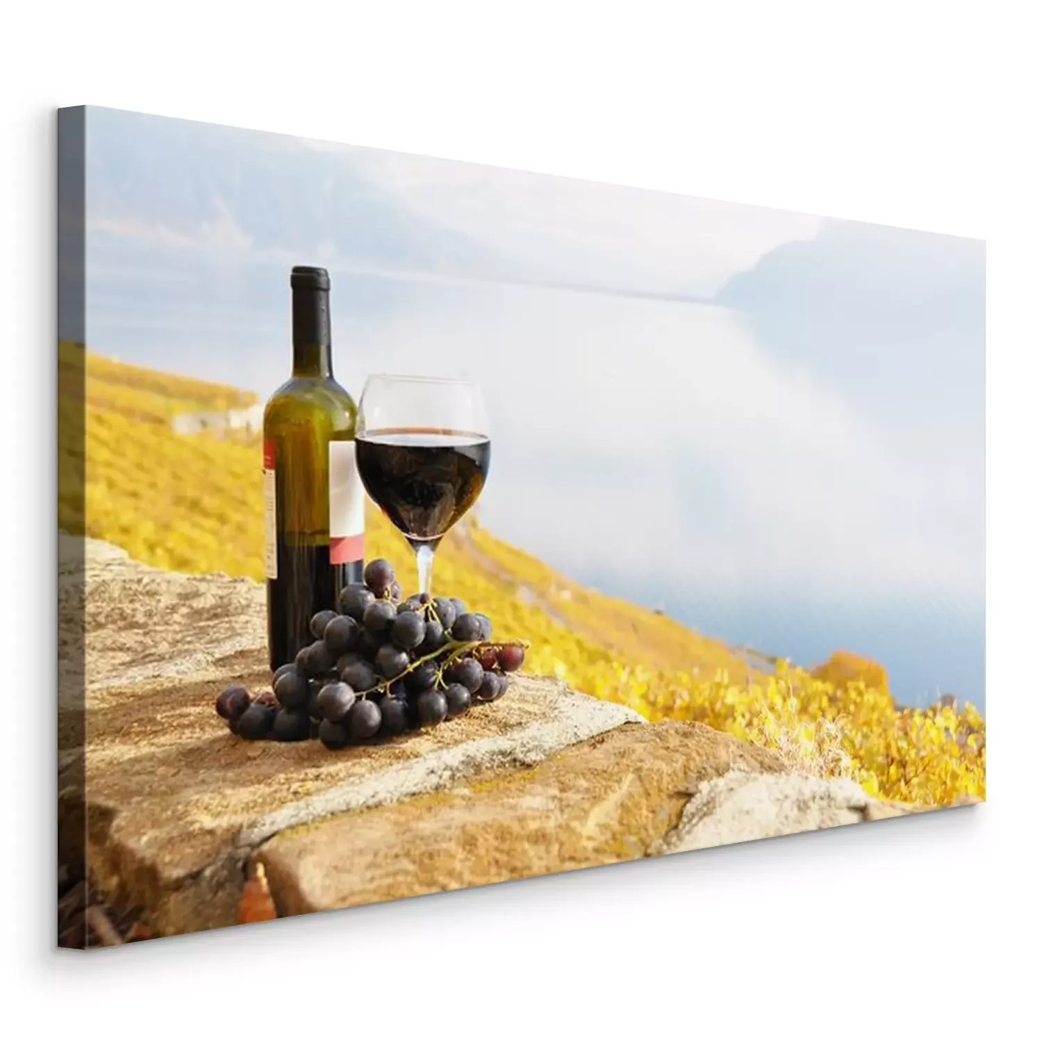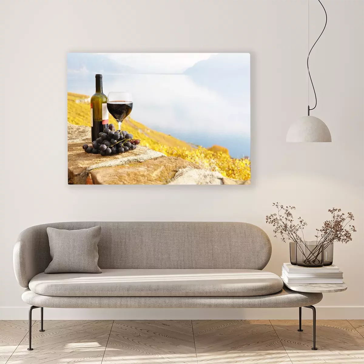Canvas: Glas rode wijn op het terras wijngaard in Lavaux-gebied, Swit