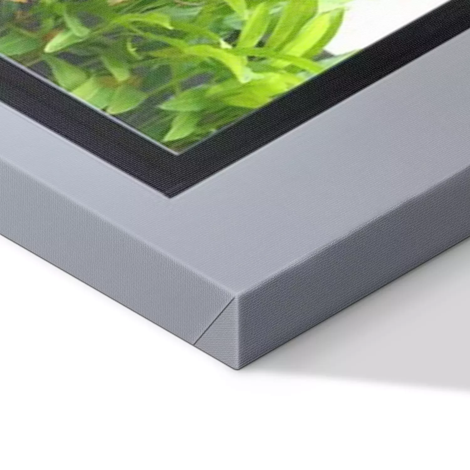 De print wordt aangebracht op hoogwaardig canvas dat op een schildersweefgetouw (spieraam) wordt gespannen. Omdat de print de zijranden bedekt, hoeft het ontwerp niet met een extra kader te worden omlijst. Wij raden ook composities aan die uit meerdere foto's bestaan en zo een coherente compositie vormen.
