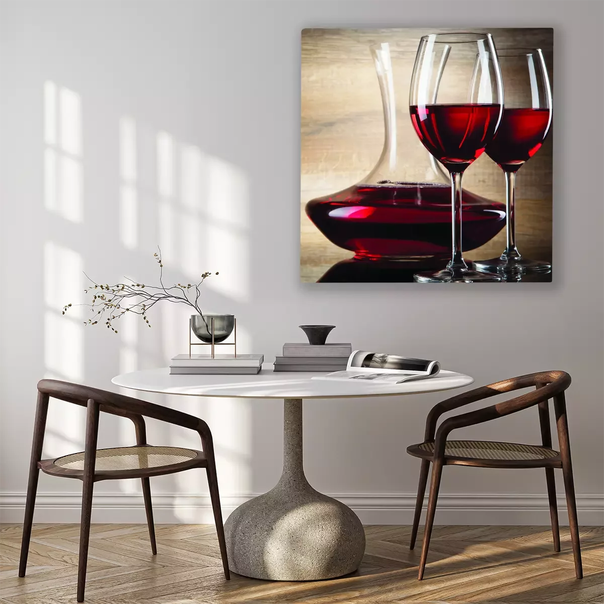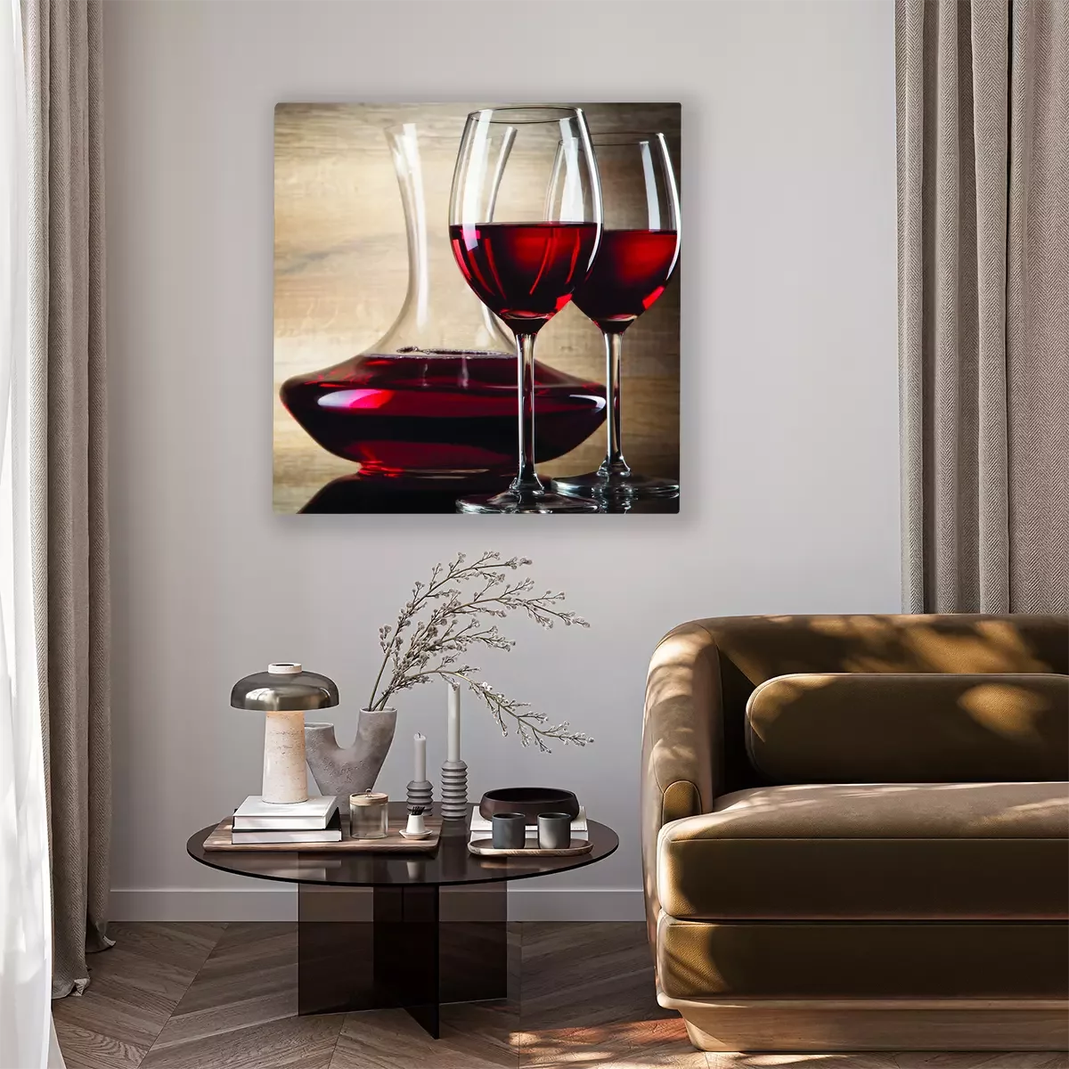 Glazen vaten met rode wijn