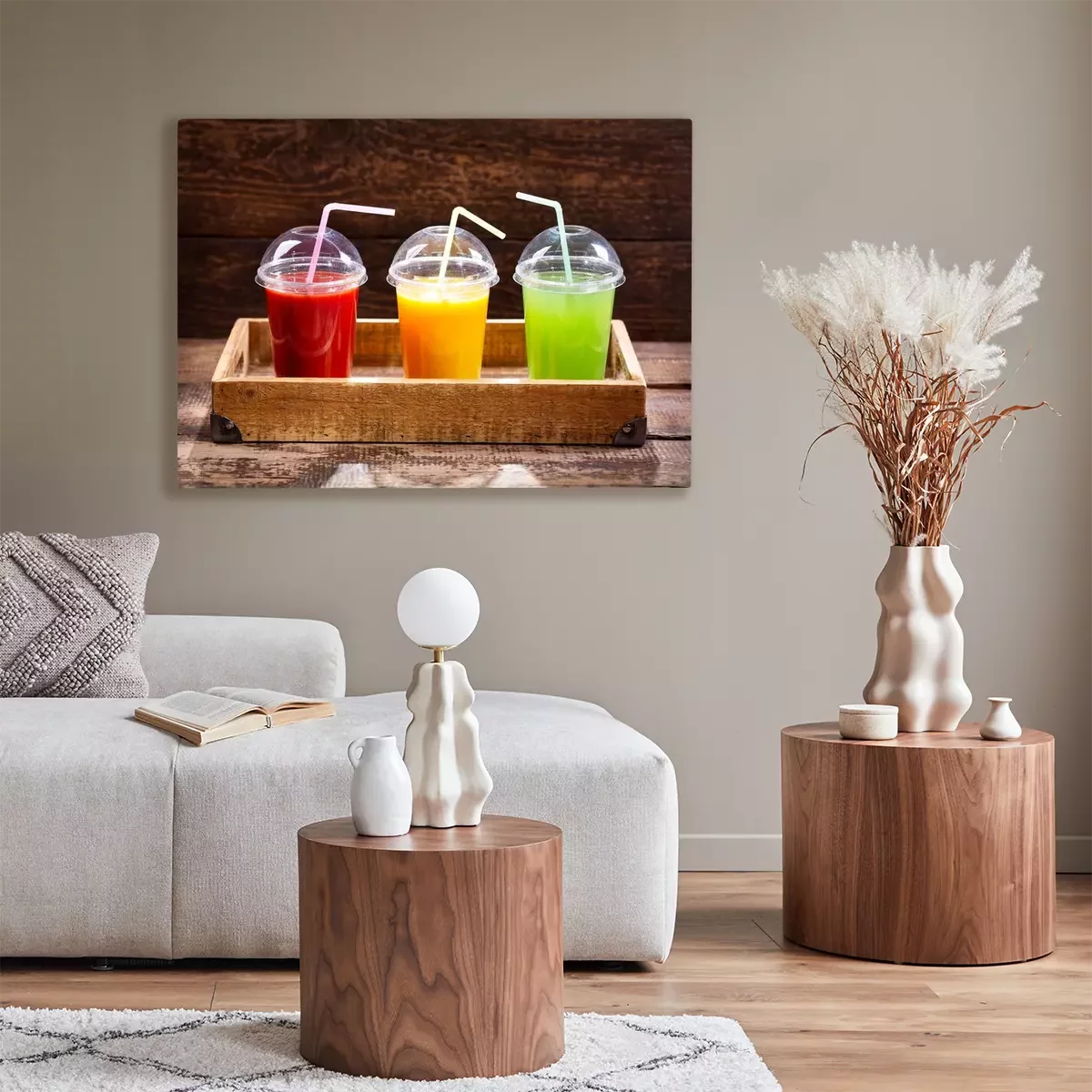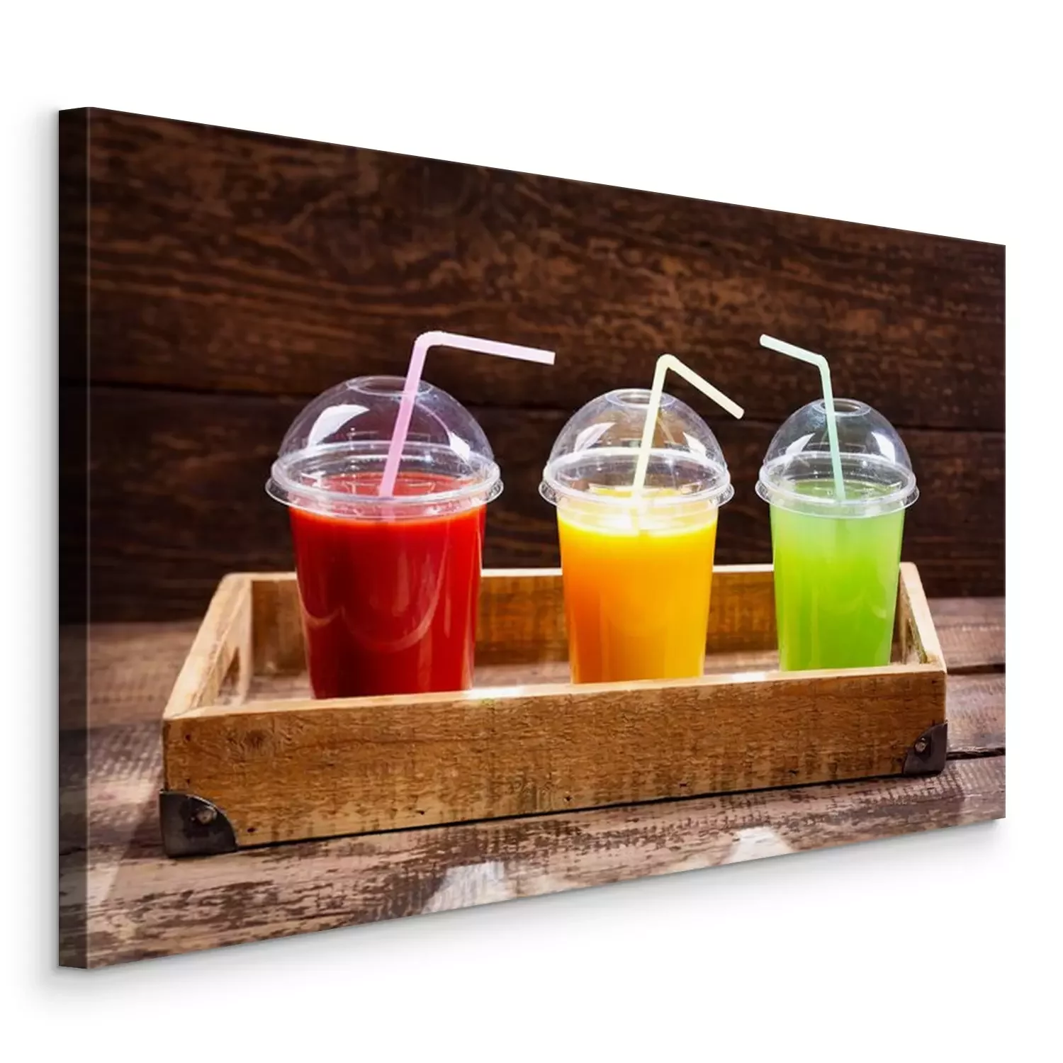 Canvas: glazen verse sappen in een lade