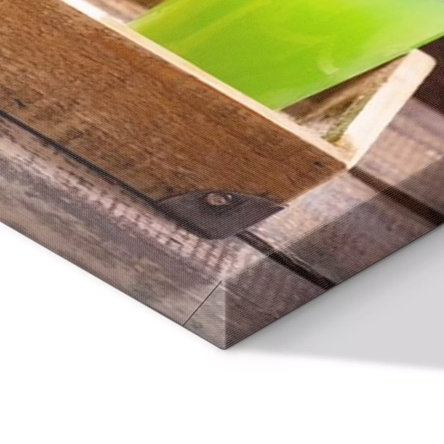 De print wordt aangebracht op hoogwaardig canvas dat op een schildersweefgetouw (spieraam) wordt gespannen. Omdat de print de zijranden bedekt, hoeft het ontwerp niet met een extra kader te worden omlijst. Wij raden ook composities aan die uit meerdere foto's bestaan en zo een coherente compositie vormen.