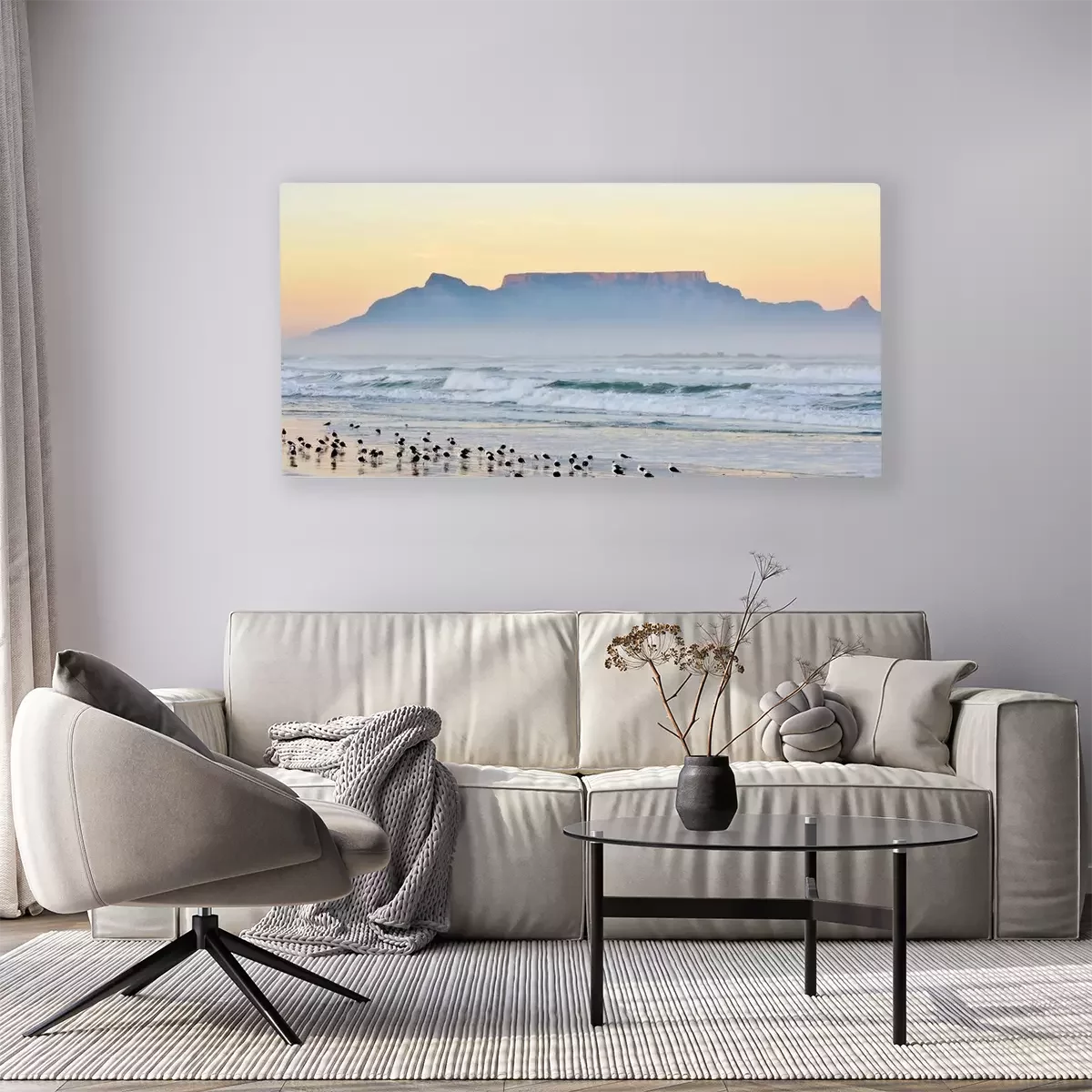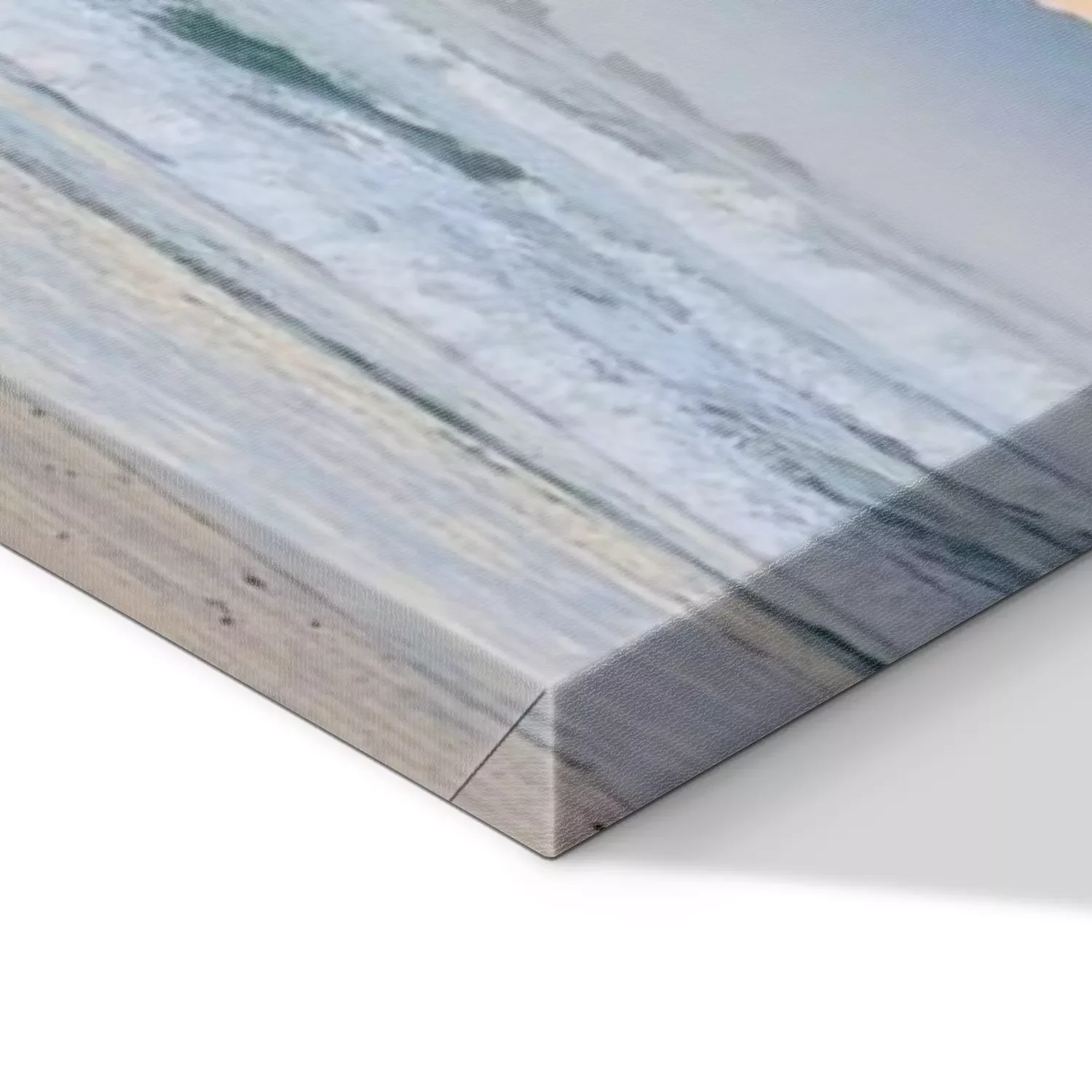 De print wordt aangebracht op hoogwaardig canvas dat op een schildersweefgetouw (spieraam) wordt gespannen. Omdat de print de zijranden bedekt, hoeft het ontwerp niet met een extra kader te worden omlijst. Wij raden ook composities aan die uit meerdere foto's bestaan en zo een coherente compositie vormen.