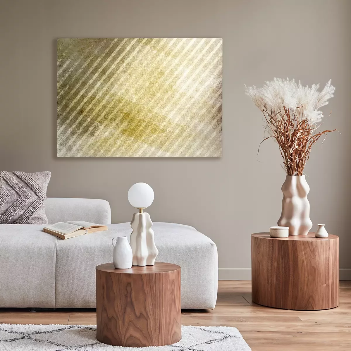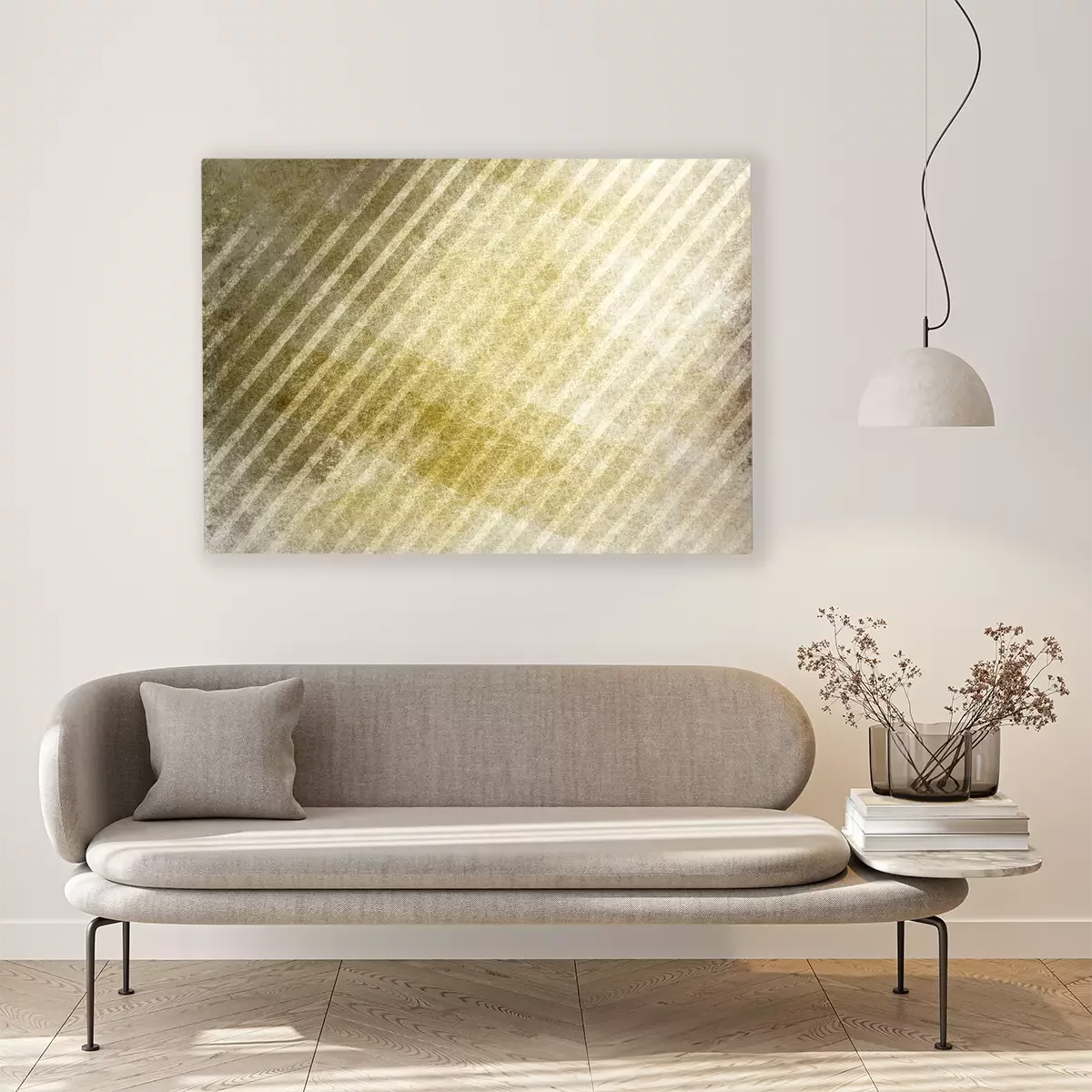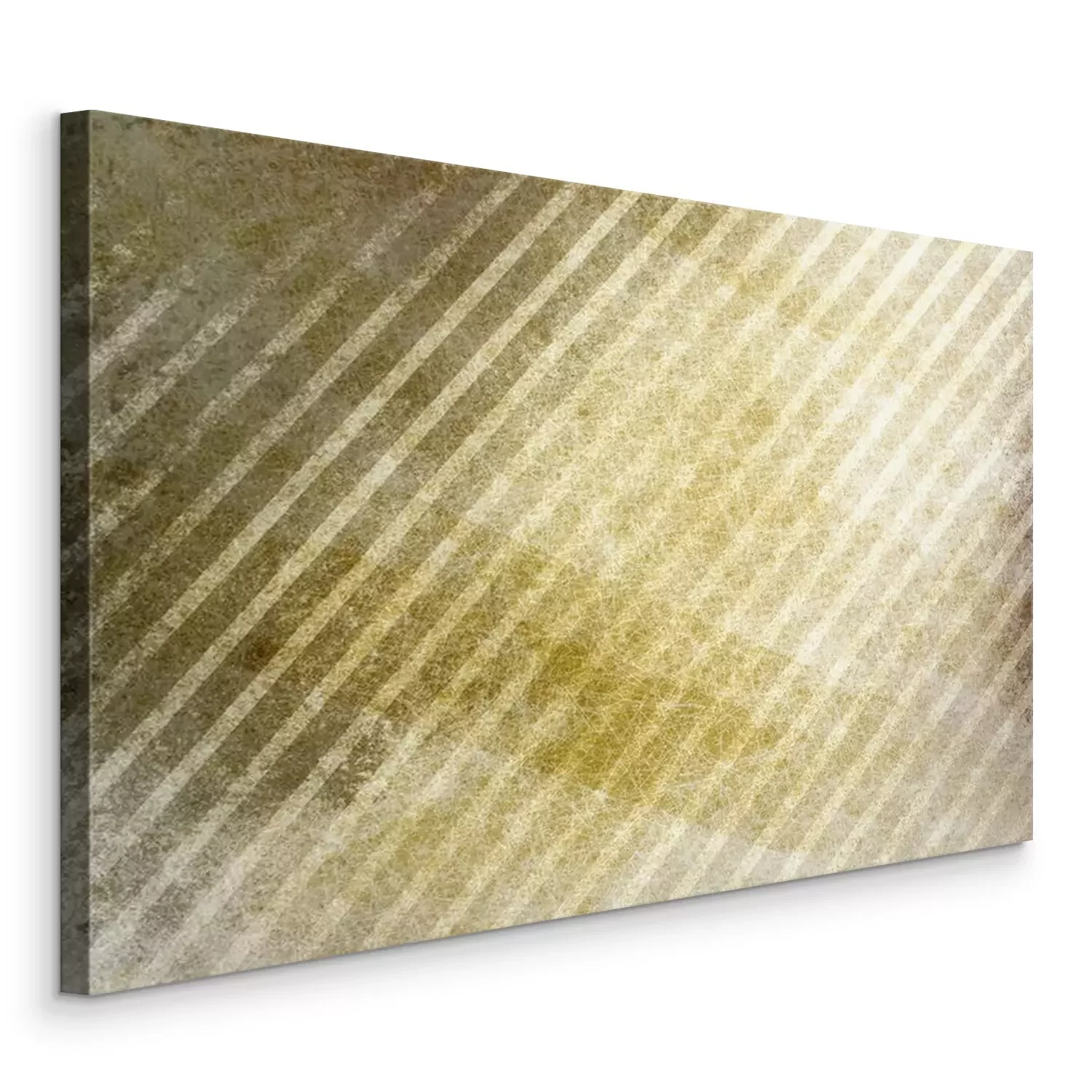 Canvas: gold background with white stripes in diagonal pattern and faint gray grunge messy texture