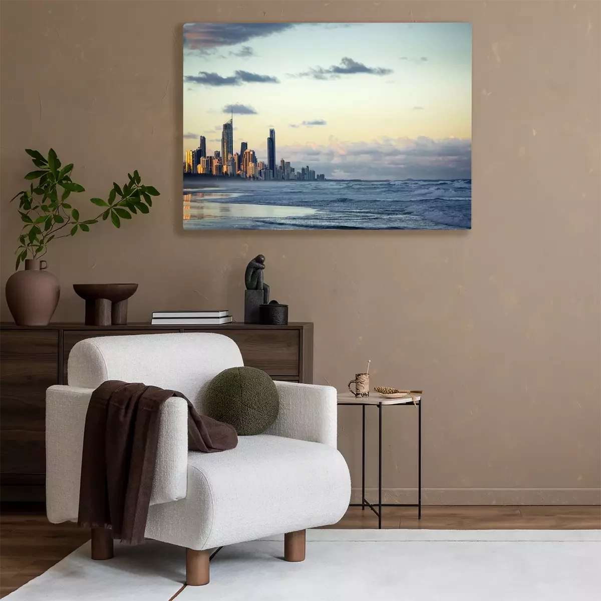 De print wordt aangebracht op hoogwaardig canvas dat op een schildersweefgetouw (spieraam) wordt gespannen. Omdat de print de zijranden bedekt, hoeft het ontwerp niet met een extra kader te worden omlijst. Wij raden ook composities aan die uit meerdere foto's bestaan en zo een coherente compositie vormen.