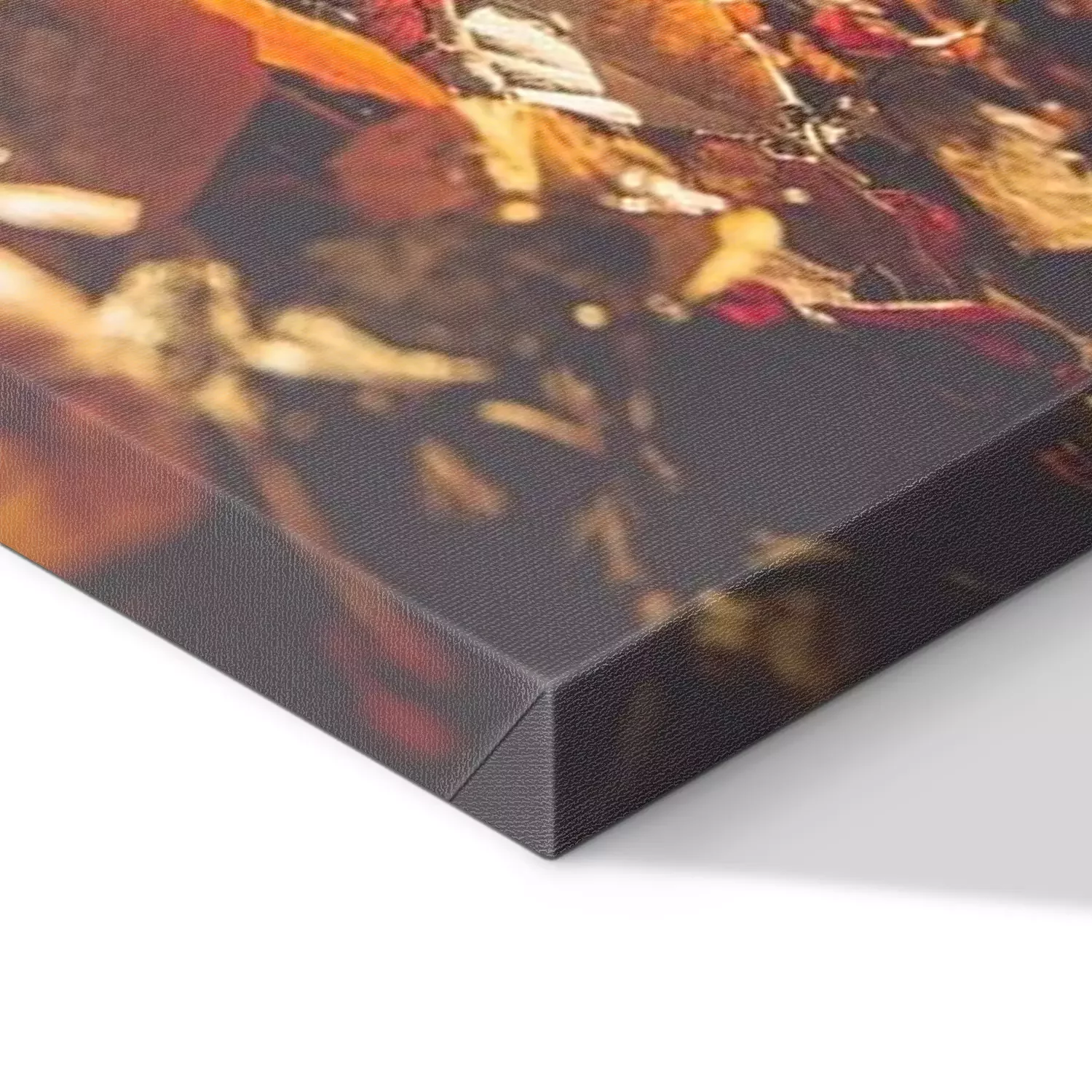 De print wordt aangebracht op hoogwaardig canvas dat op een schildersweefgetouw (spieraam) wordt gespannen. Omdat de print de zijranden bedekt, hoeft het ontwerp niet met een extra kader te worden omlijst. Wij raden ook composities aan die uit meerdere foto's bestaan en zo een coherente compositie vormen.