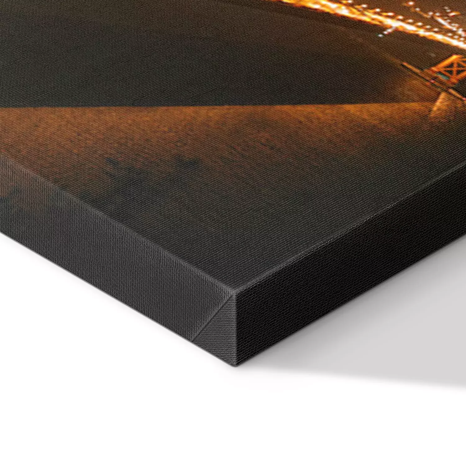 De print wordt aangebracht op hoogwaardig canvas dat op een schildersweefgetouw (spieraam) wordt gespannen. Omdat de print de zijranden bedekt, hoeft het ontwerp niet met een extra kader te worden omlijst. Wij raden ook composities aan die uit meerdere foto's bestaan en zo een coherente compositie vormen.