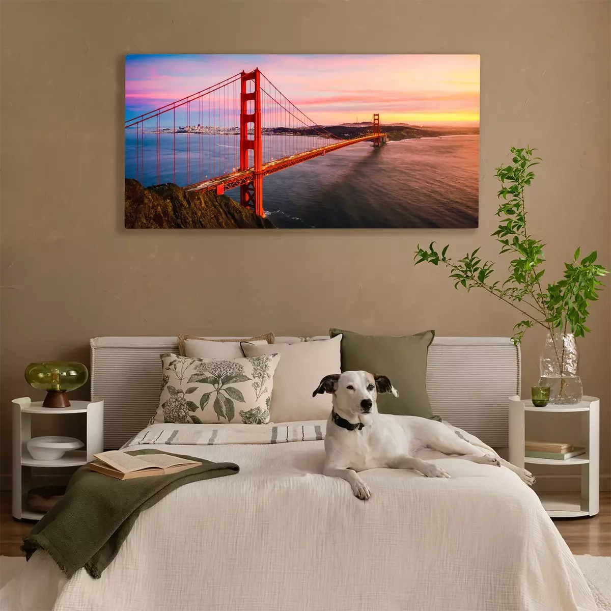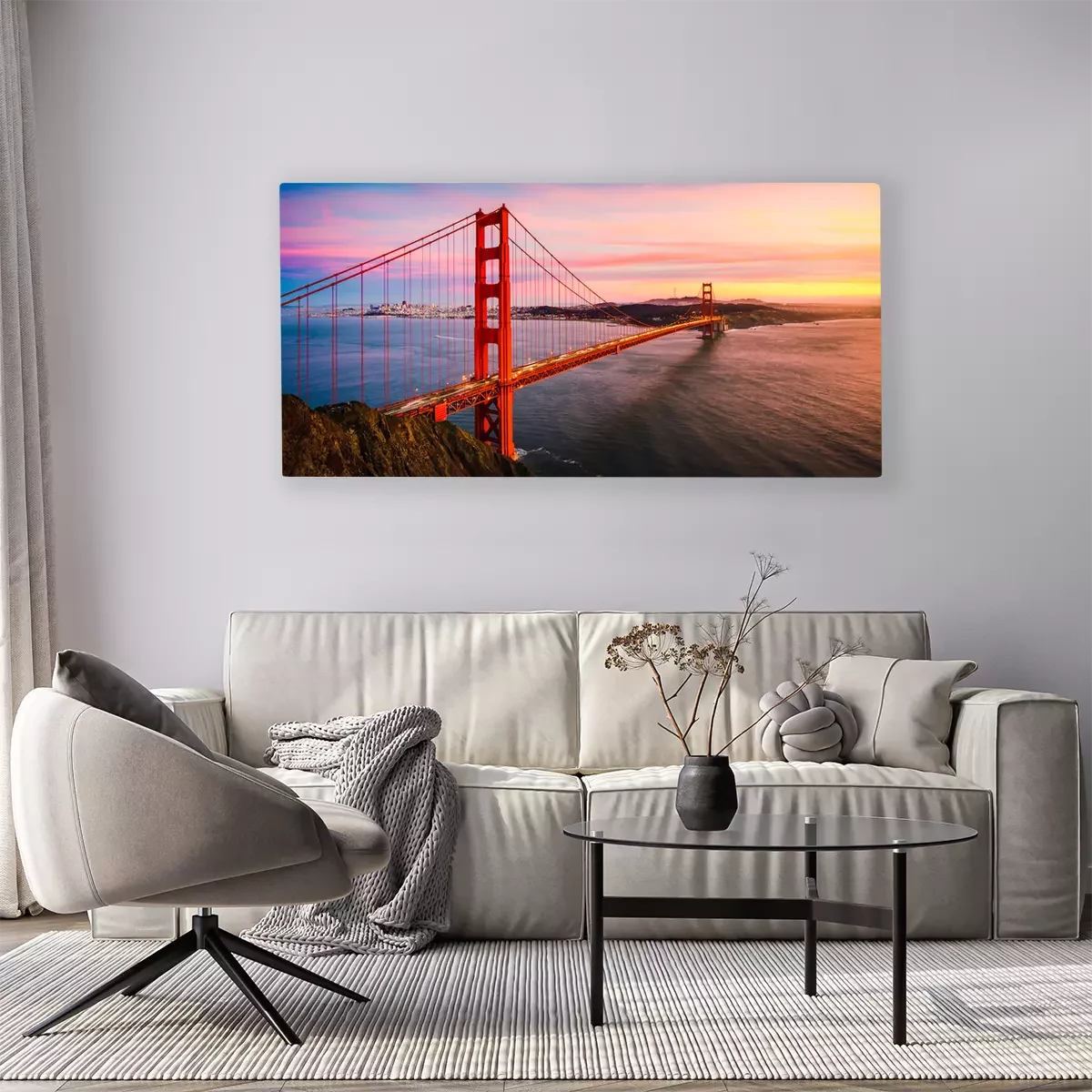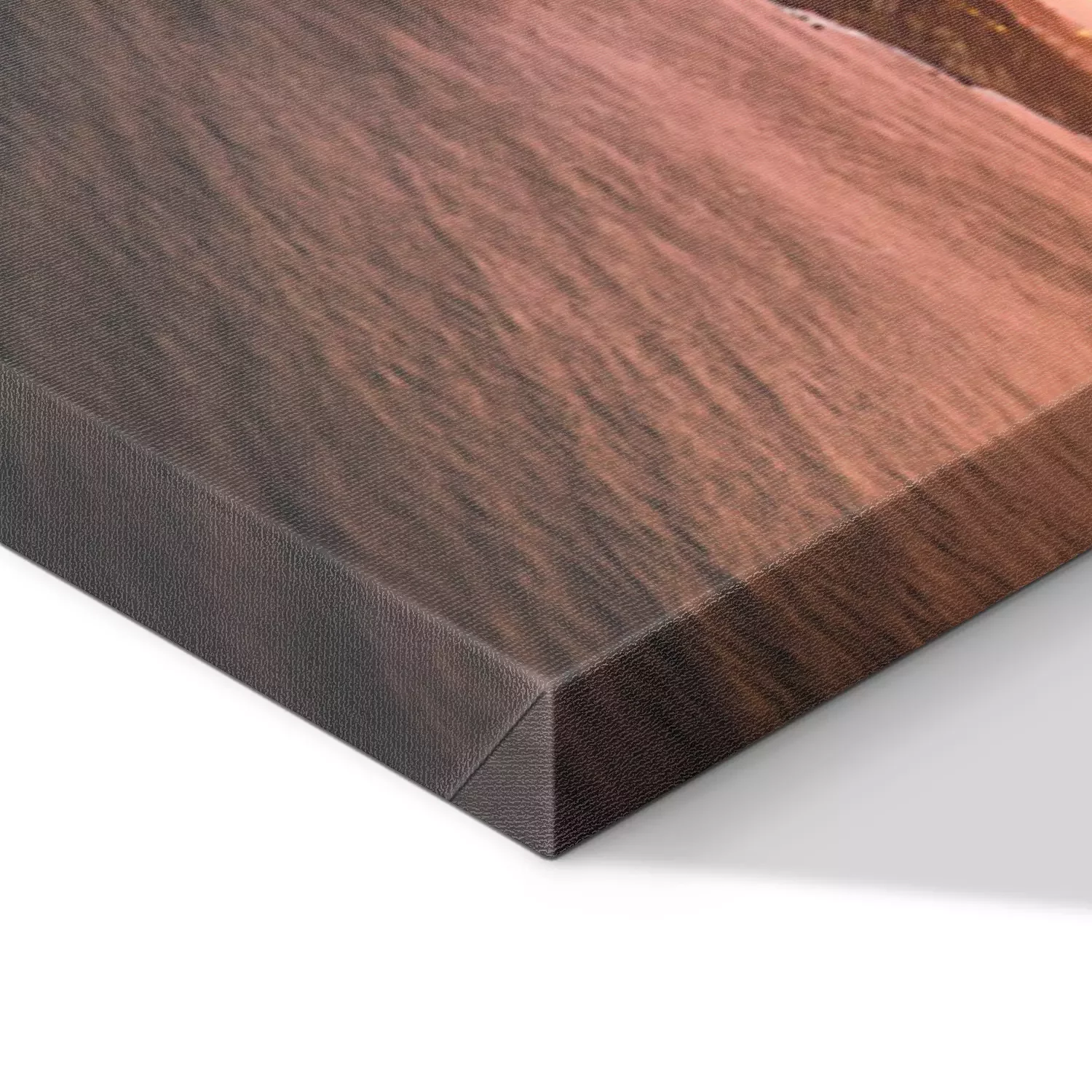 De print wordt aangebracht op hoogwaardig canvas dat op een schildersweefgetouw (spieraam) wordt gespannen. Omdat de print de zijranden bedekt, hoeft het ontwerp niet met een extra kader te worden omlijst. Wij raden ook composities aan die uit meerdere foto's bestaan en zo een coherente compositie vormen.