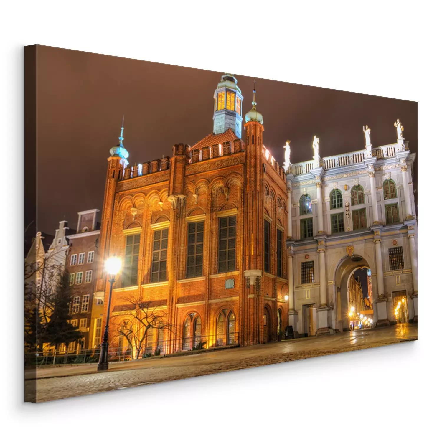Canvas: Golden Gate in Gdansk bij nacht - Polen