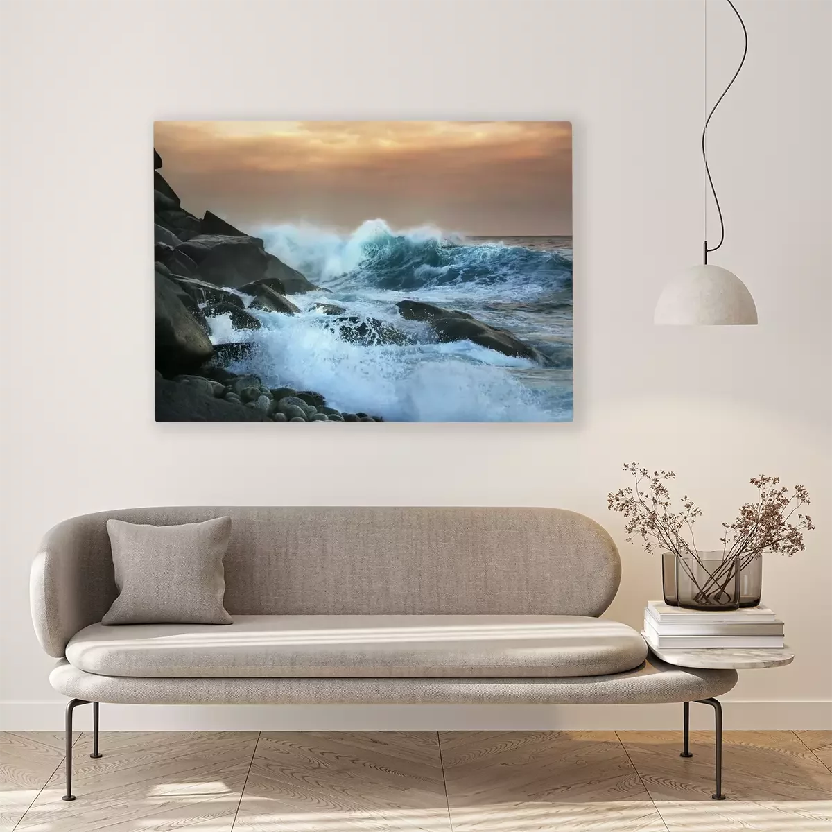 De print wordt aangebracht op hoogwaardig canvas dat op een schildersweefgetouw (spieraam) wordt gespannen. Omdat de print de zijranden bedekt, hoeft het ontwerp niet met een extra kader te worden omlijst. Wij raden ook composities aan die uit meerdere foto's bestaan en zo een coherente compositie vormen.