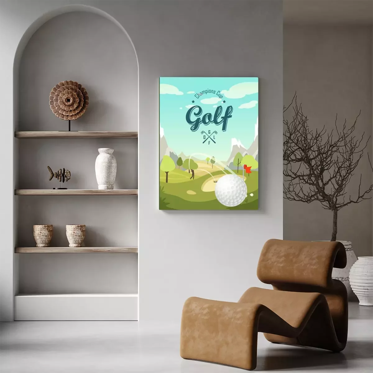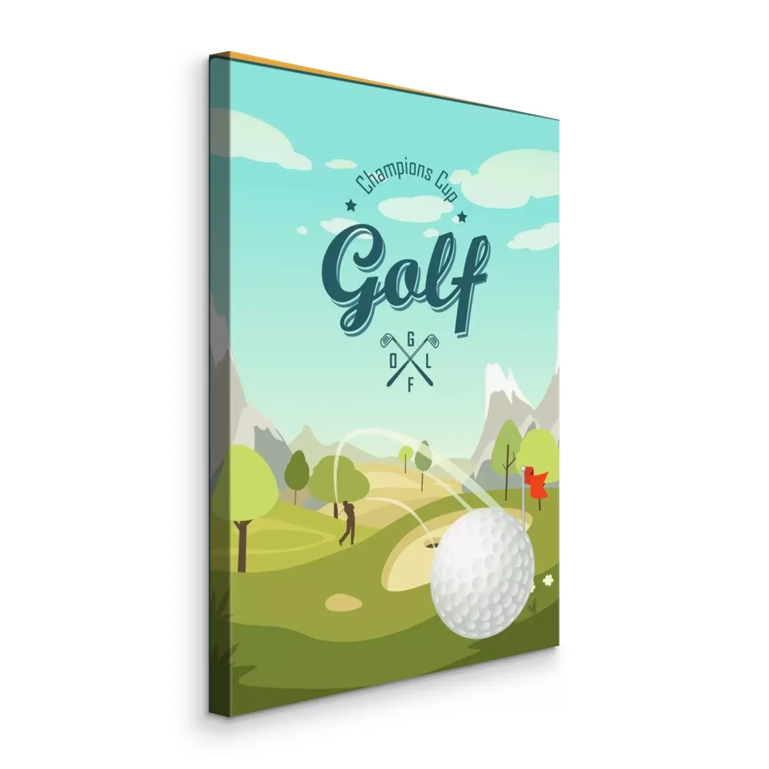 Canvas Golfbal en een prachtig landschap. Golf Club. Affiche voor sport