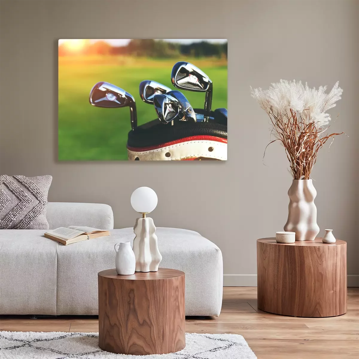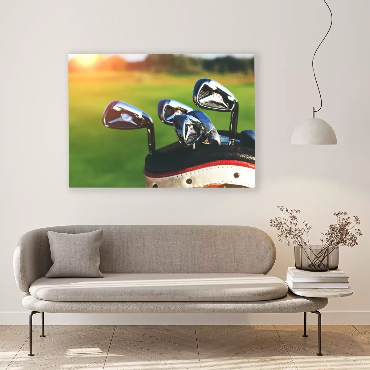 Canvas: Golfclubs chauffeurs over groene veld achtergrond