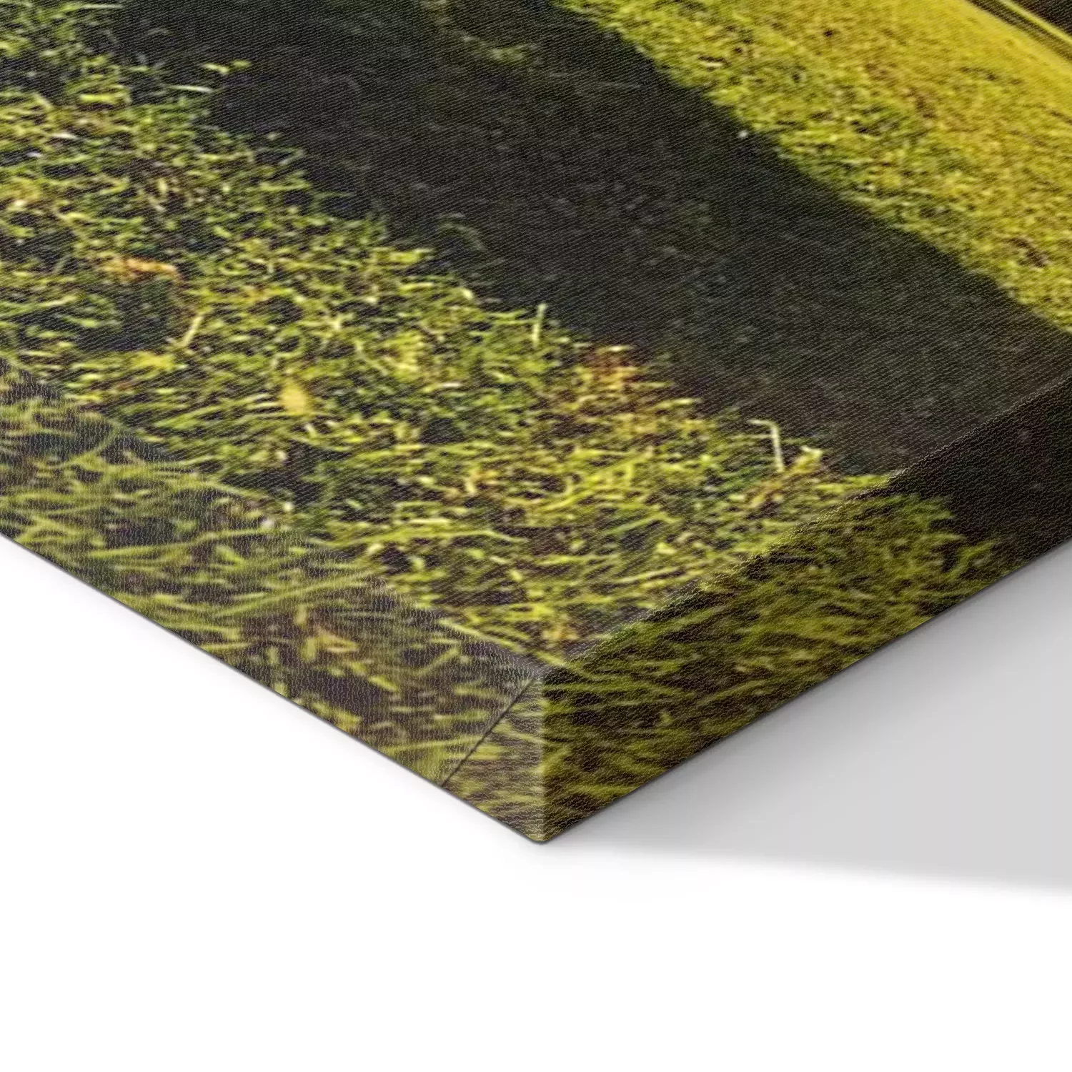 De print wordt aangebracht op hoogwaardig canvas dat op een schildersweefgetouw (spieraam) wordt gespannen. Omdat de print de zijranden bedekt, hoeft het ontwerp niet met een extra kader te worden omlijst. Wij raden ook composities aan die uit meerdere foto's bestaan en zo een coherente compositie vormen.