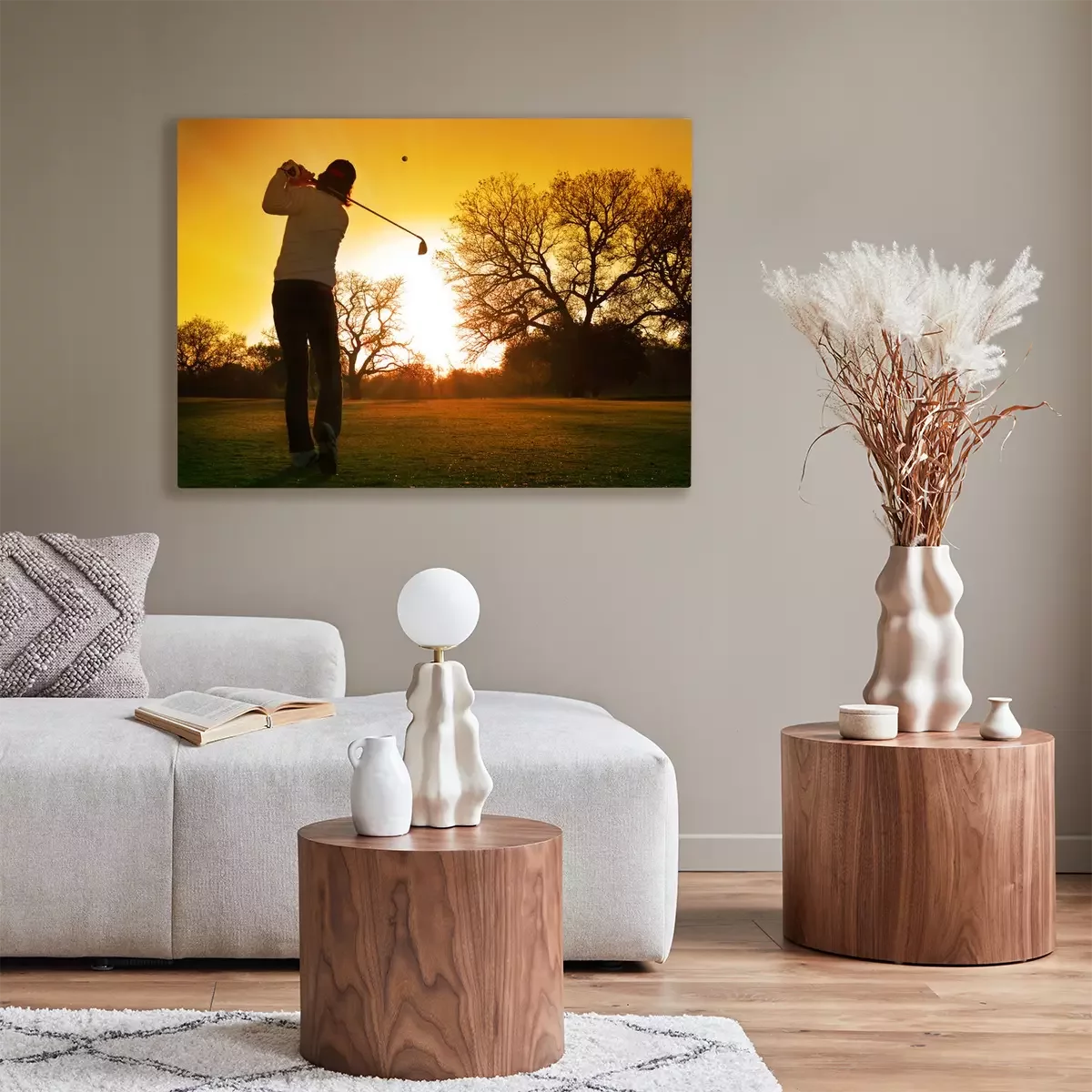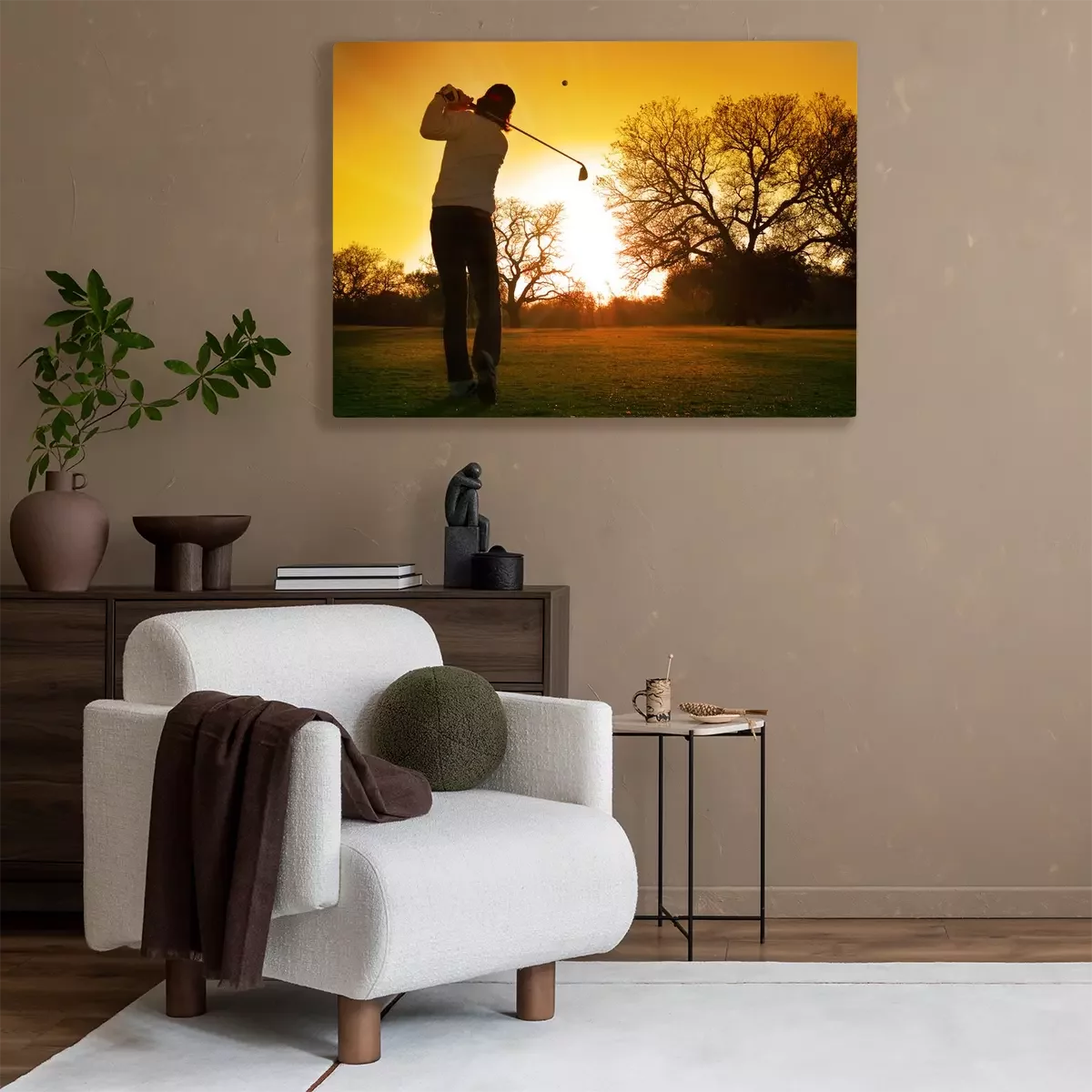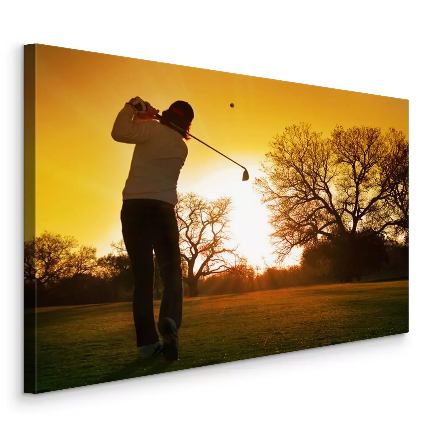 Canvas: golfspeler play beroerte in de ondergaande zon