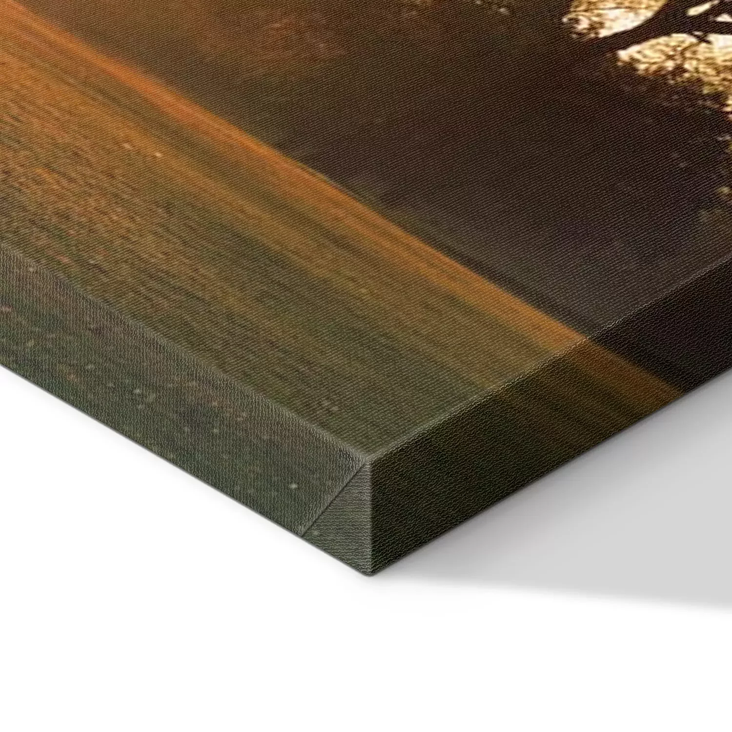 De print wordt aangebracht op hoogwaardig canvas dat op een schildersweefgetouw (spieraam) wordt gespannen. Omdat de print de zijranden bedekt, hoeft het ontwerp niet met een extra kader te worden omlijst. Wij raden ook composities aan die uit meerdere foto's bestaan en zo een coherente compositie vormen.