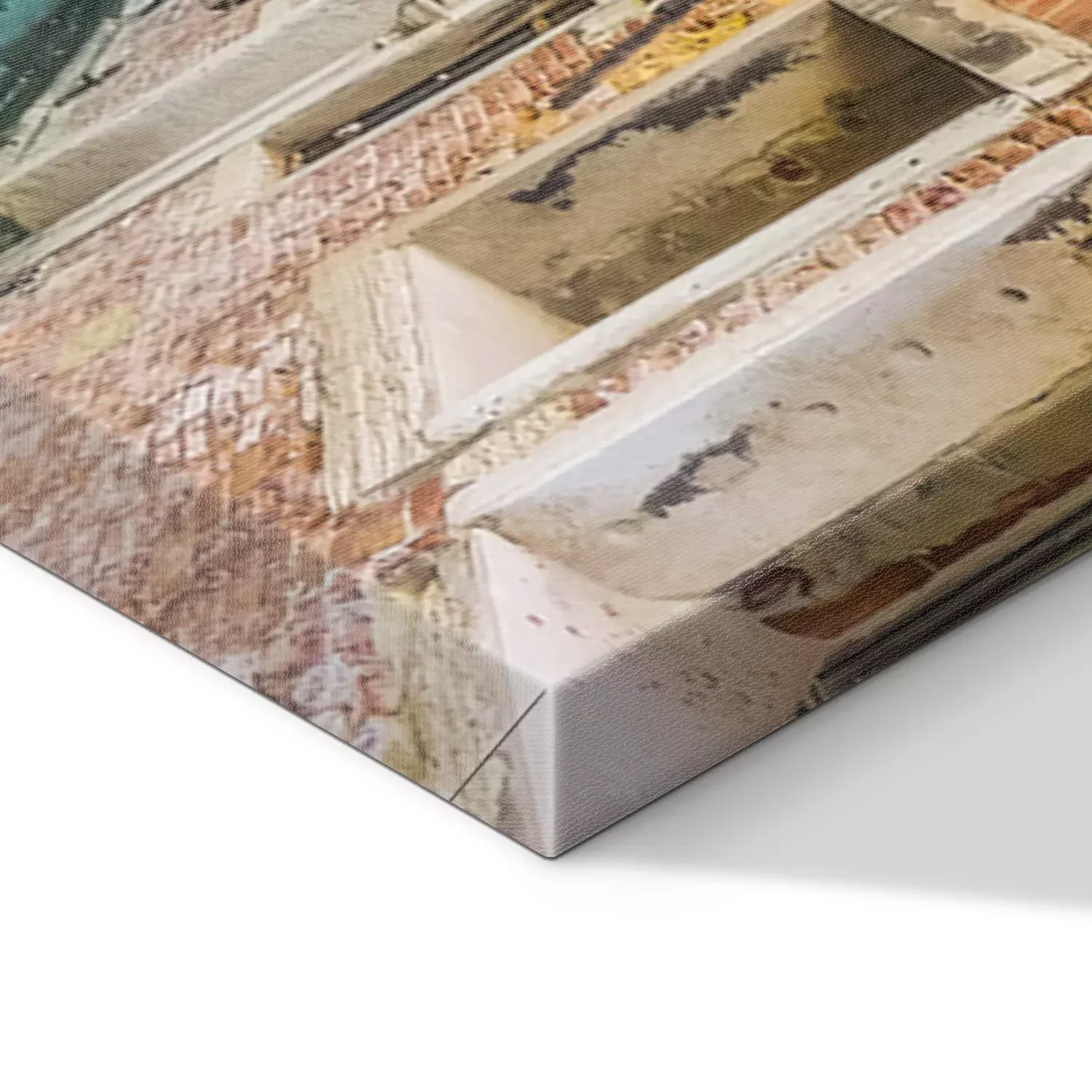 De print wordt aangebracht op hoogwaardig canvas dat op een schildersweefgetouw (spieraam) wordt gespannen. Omdat de print de zijranden bedekt, hoeft het ontwerp niet met een extra kader te worden omlijst. Wij raden ook composities aan die uit meerdere foto's bestaan en zo een coherente compositie vormen.