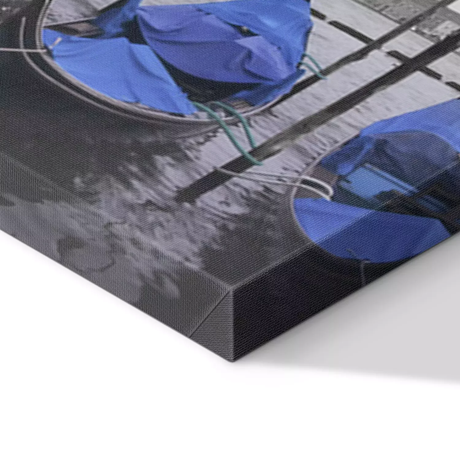 De print wordt aangebracht op hoogwaardig canvas dat op een schildersweefgetouw (spieraam) wordt gespannen. Omdat de print de zijranden bedekt, hoeft het ontwerp niet met een extra kader te worden omlijst. Wij raden ook composities aan die uit meerdere foto's bestaan en zo een coherente compositie vormen.