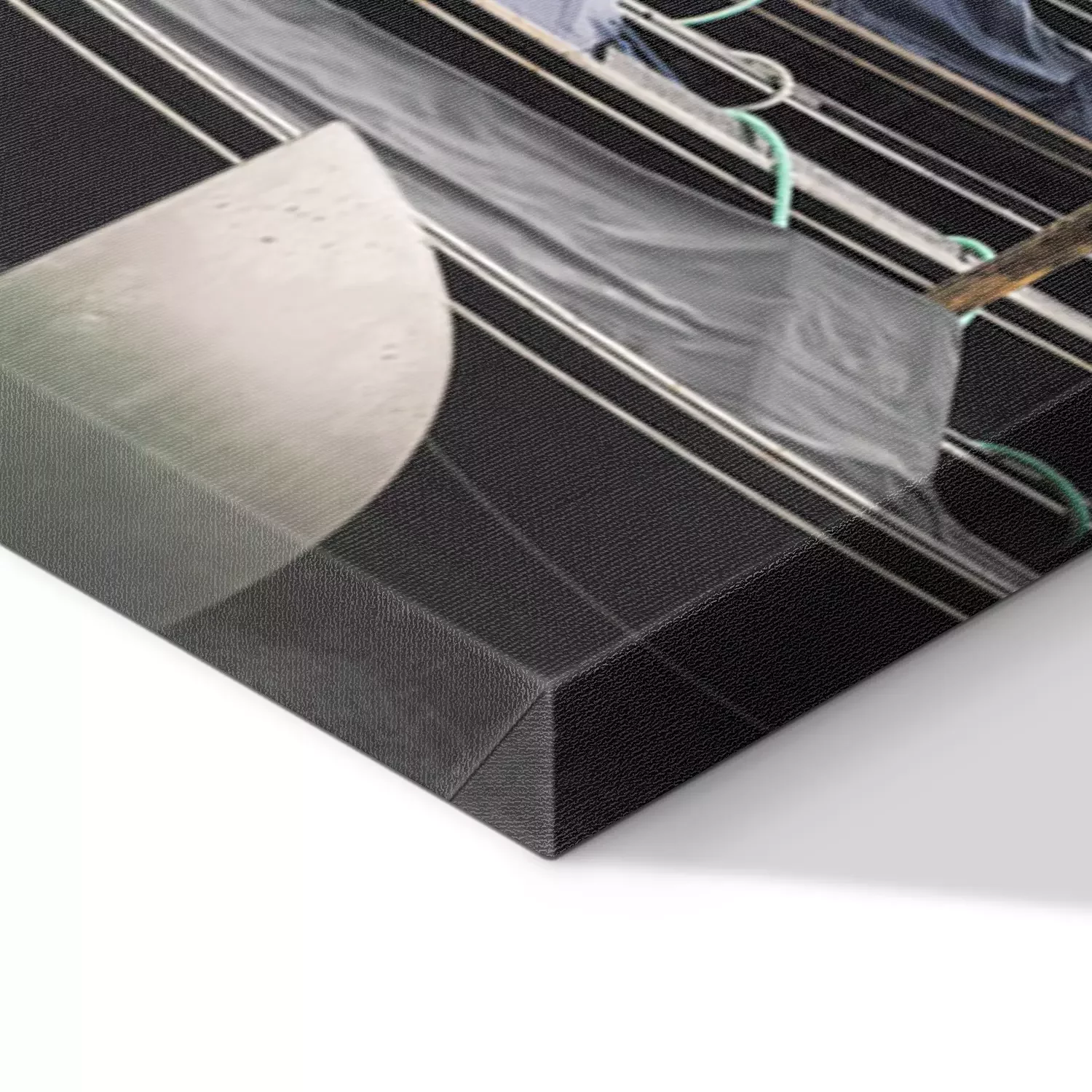 De print wordt aangebracht op hoogwaardig canvas dat op een schildersweefgetouw (spieraam) wordt gespannen. Omdat de print de zijranden bedekt, hoeft het ontwerp niet met een extra kader te worden omlijst. Wij raden ook composities aan die uit meerdere foto's bestaan en zo een coherente compositie vormen.