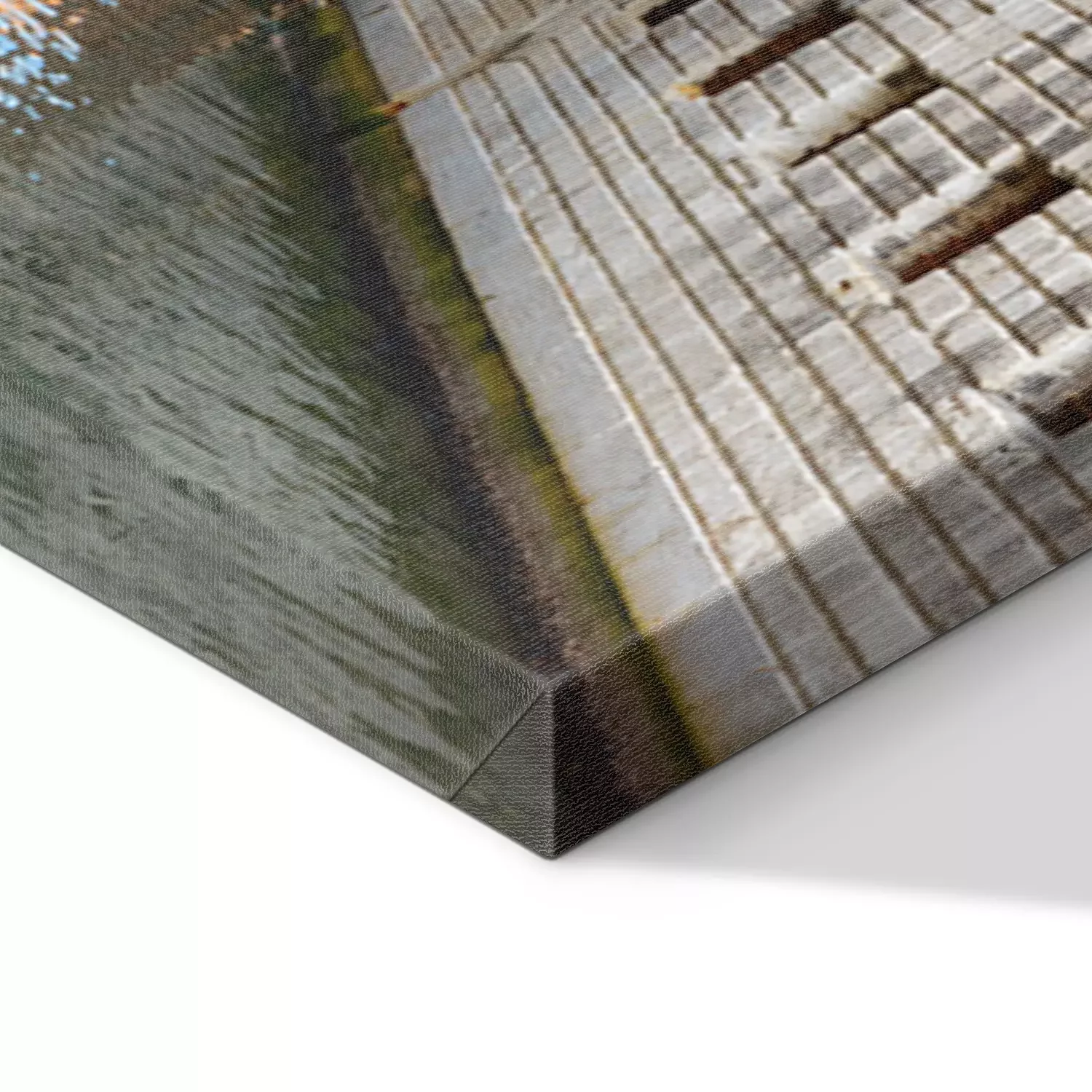 De print wordt aangebracht op hoogwaardig canvas dat op een schildersweefgetouw (spieraam) wordt gespannen. Omdat de print de zijranden bedekt, hoeft het ontwerp niet met een extra kader te worden omlijst. Wij raden ook composities aan die uit meerdere foto's bestaan en zo een coherente compositie vormen.