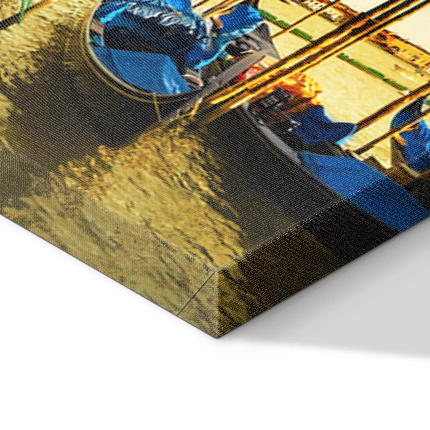 De print wordt aangebracht op hoogwaardig canvas dat op een schildersweefgetouw (spieraam) wordt gespannen. Omdat de print de zijranden bedekt, hoeft het ontwerp niet met een extra kader te worden omlijst. Wij raden ook composities aan die uit meerdere foto's bestaan en zo een coherente compositie vormen.