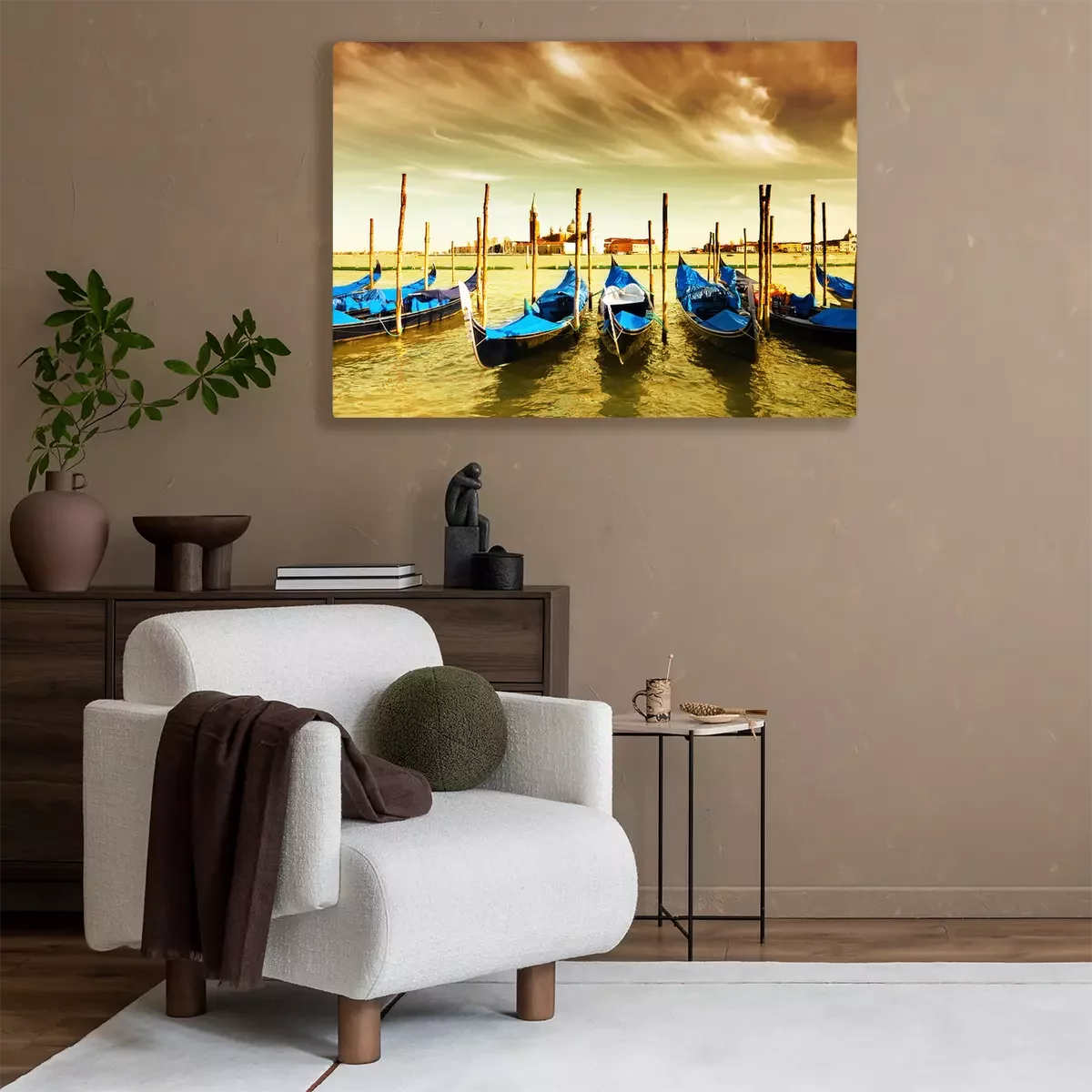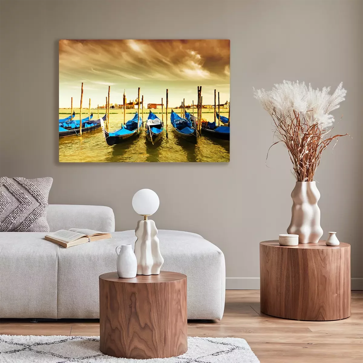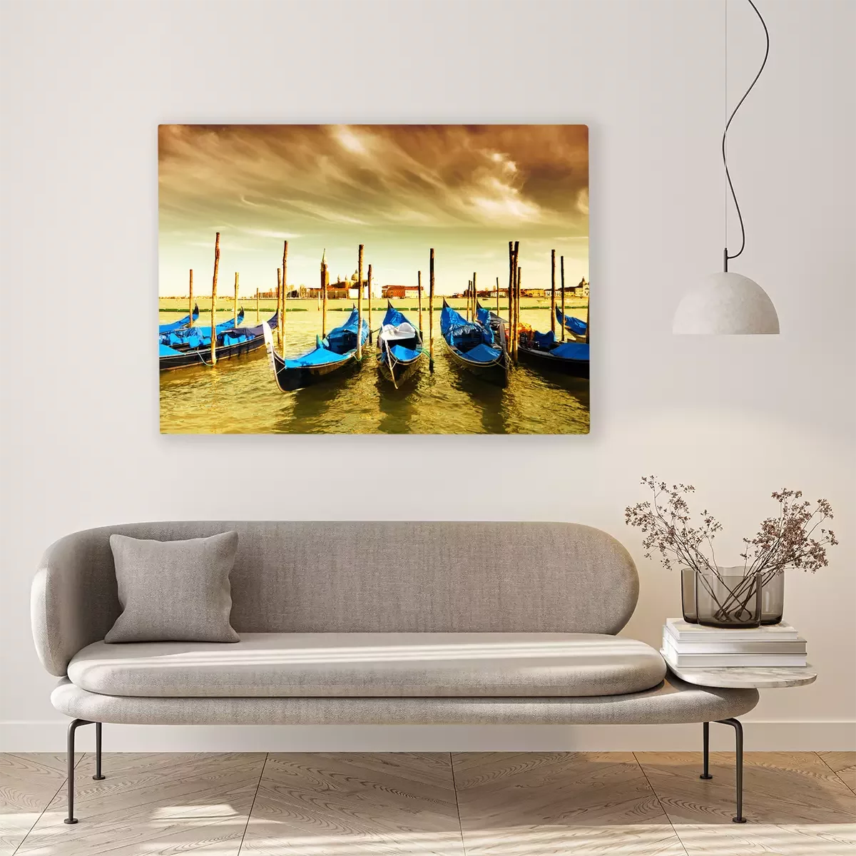 Canvas: Gondels op de achtergrond van de monumenten van Venetië