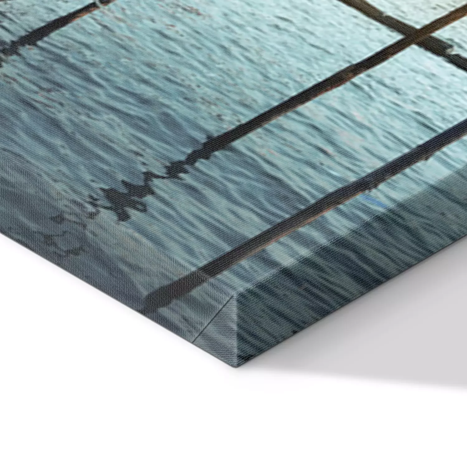 De print wordt aangebracht op hoogwaardig canvas dat op een schildersweefgetouw (spieraam) wordt gespannen. Omdat de print de zijranden bedekt, hoeft het ontwerp niet met een extra kader te worden omlijst. Wij raden ook composities aan die uit meerdere foto's bestaan en zo een coherente compositie vormen.