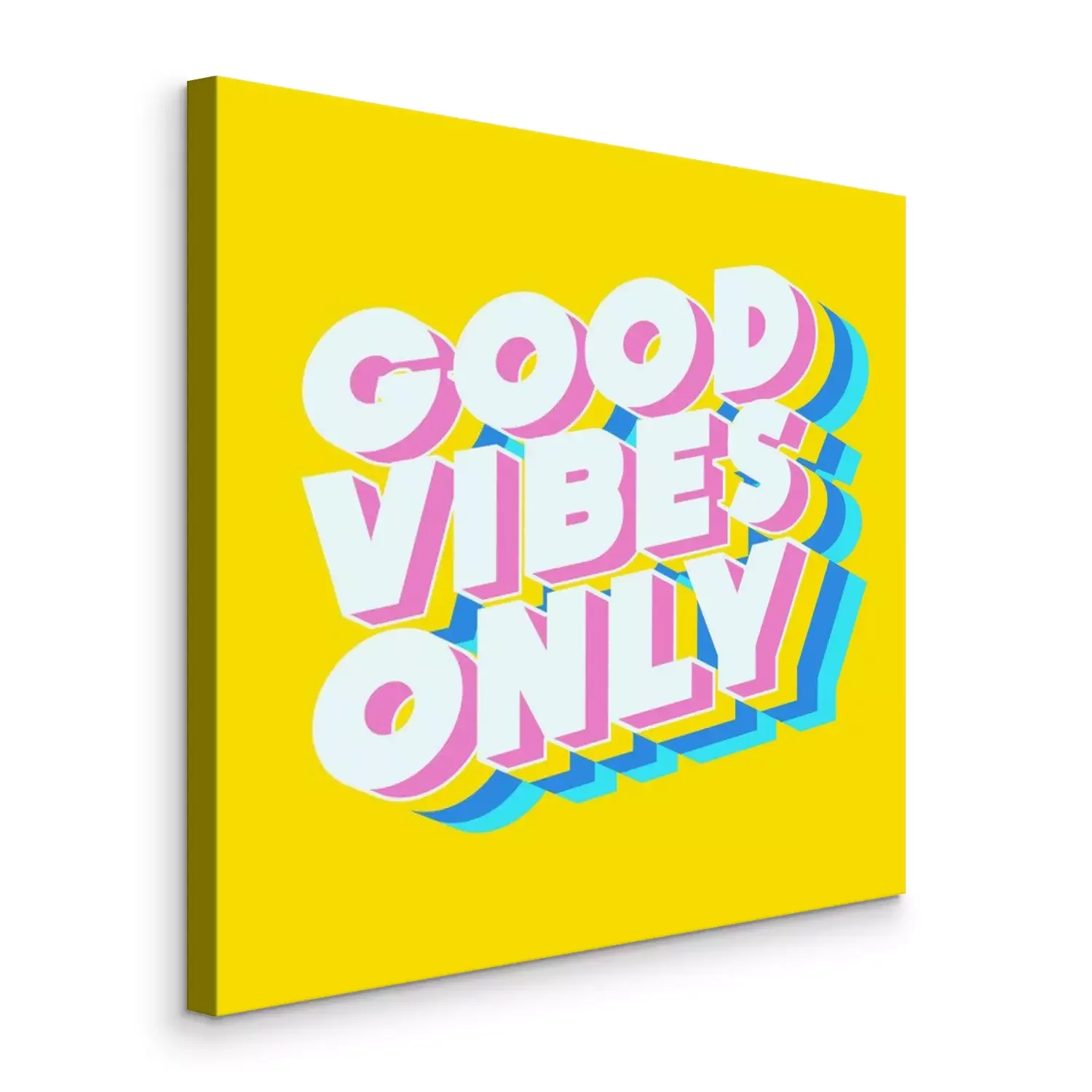 Canvas Good vibes only motivational poster 3d bold colorful modern typography. Inspirational positive sign. Quote typographic template. Vector 10 eps
