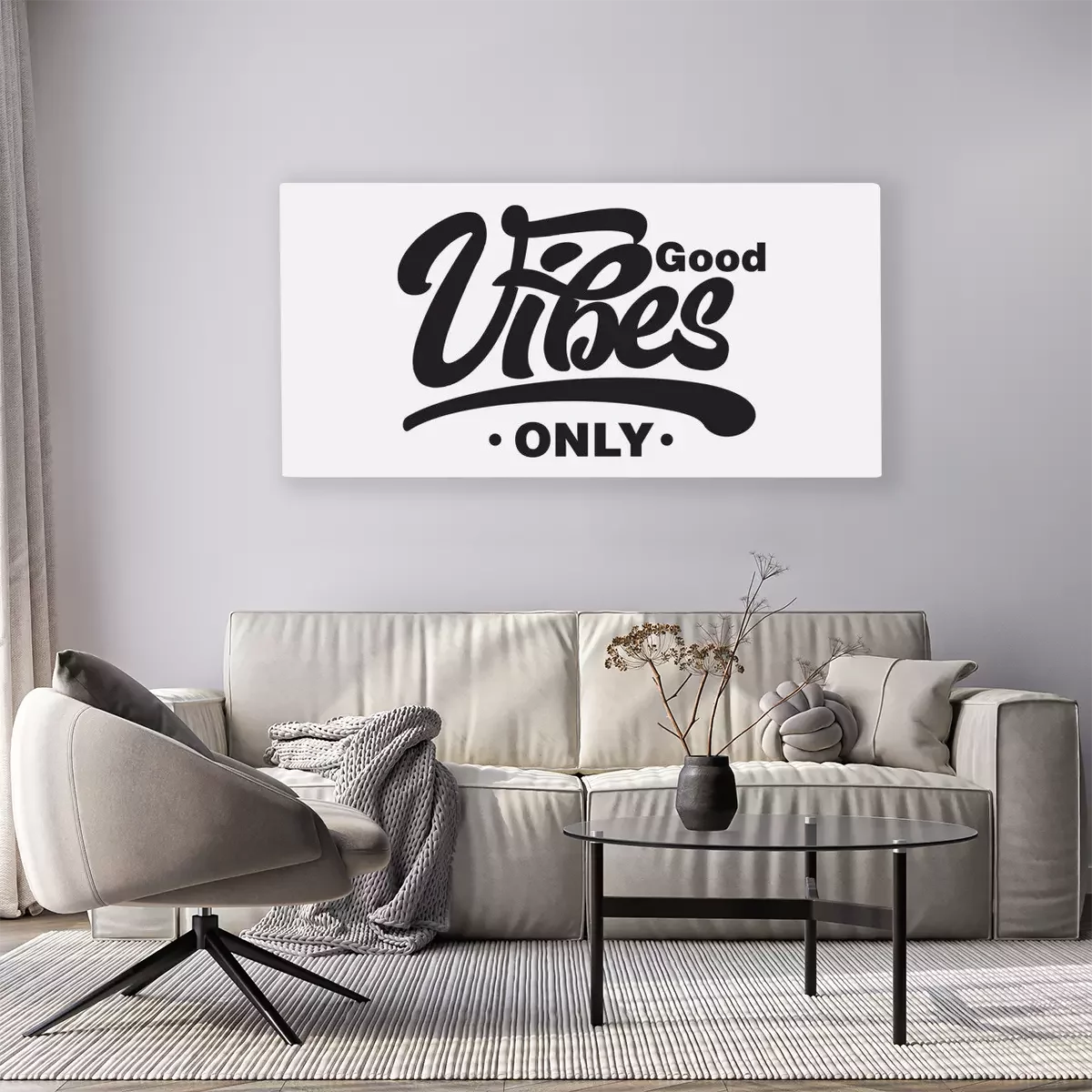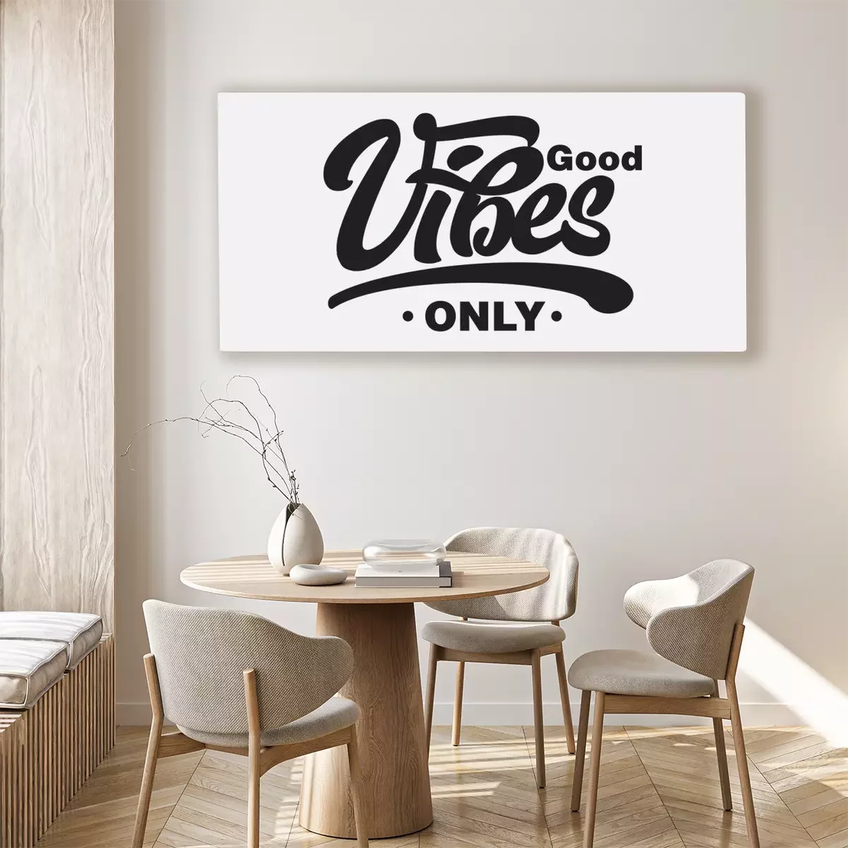 Canvas: Good vibes only text slogan print for t shirt and other us. lettering slogan graphic vector illustration