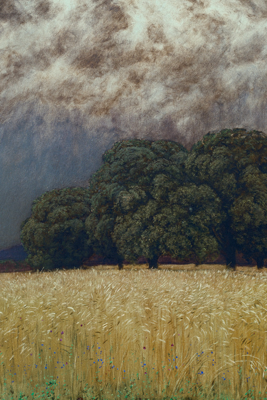 Canvas: Gouden graanvelden onder een donkere stormachtige lucht