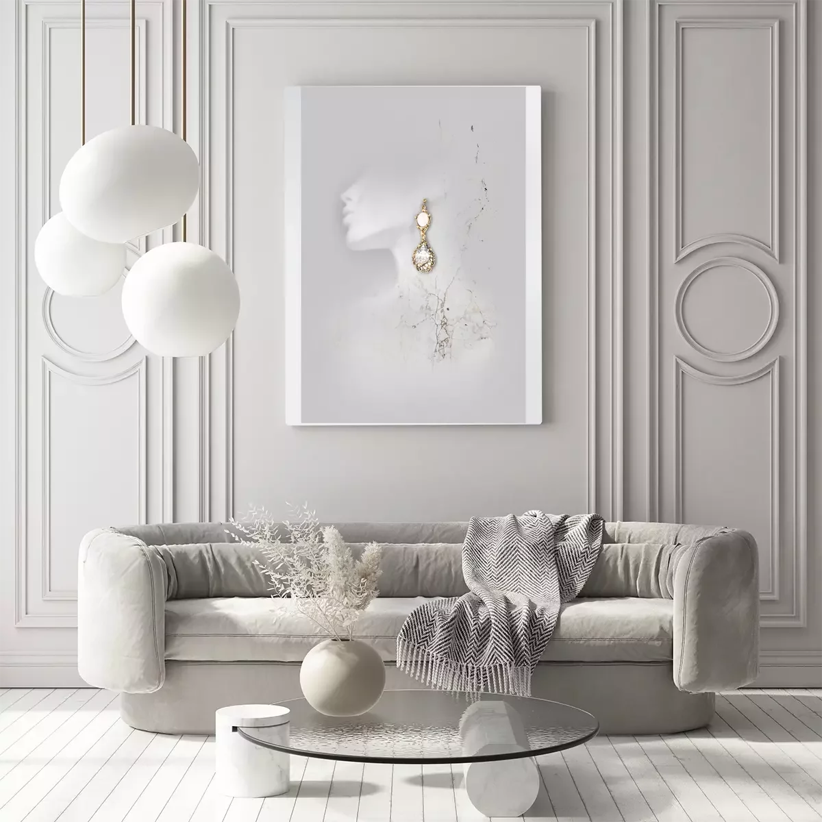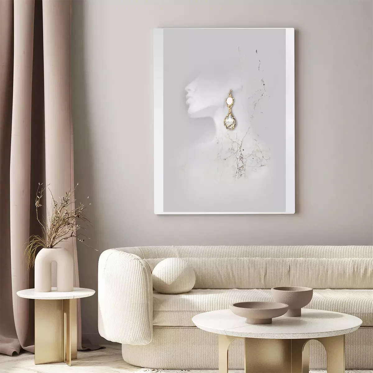 Gouden oorbellen op een wit silhouet van een vrouw