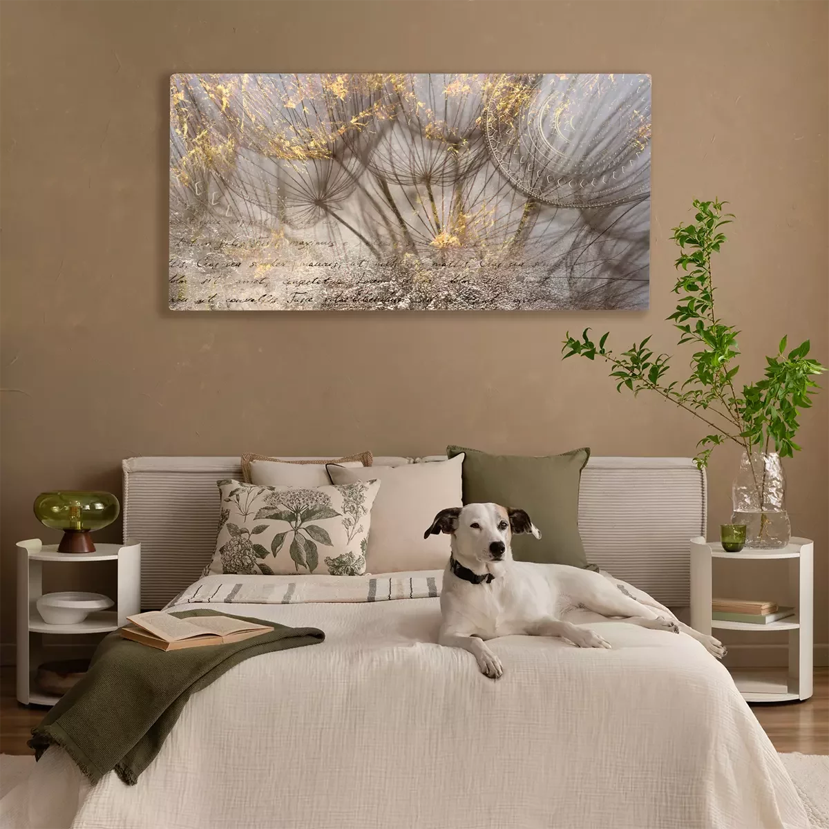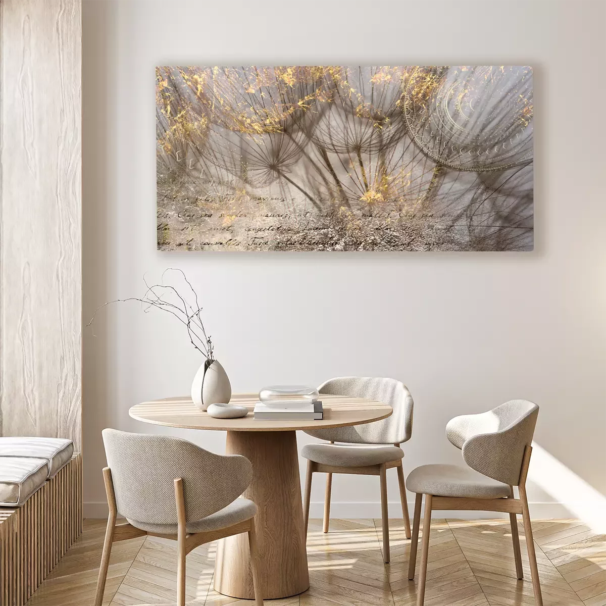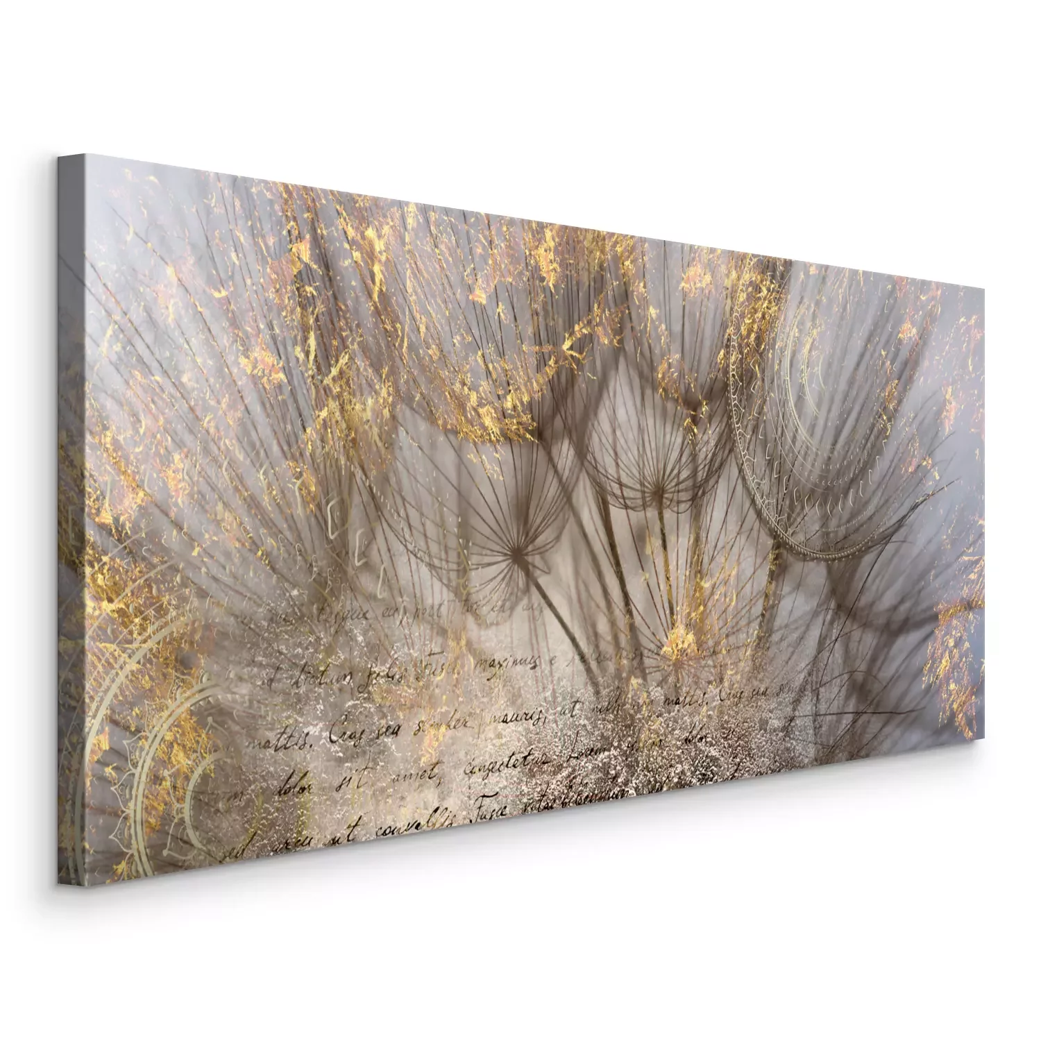 Gouden paardenbloemen met tekst op een lichte achtergrond