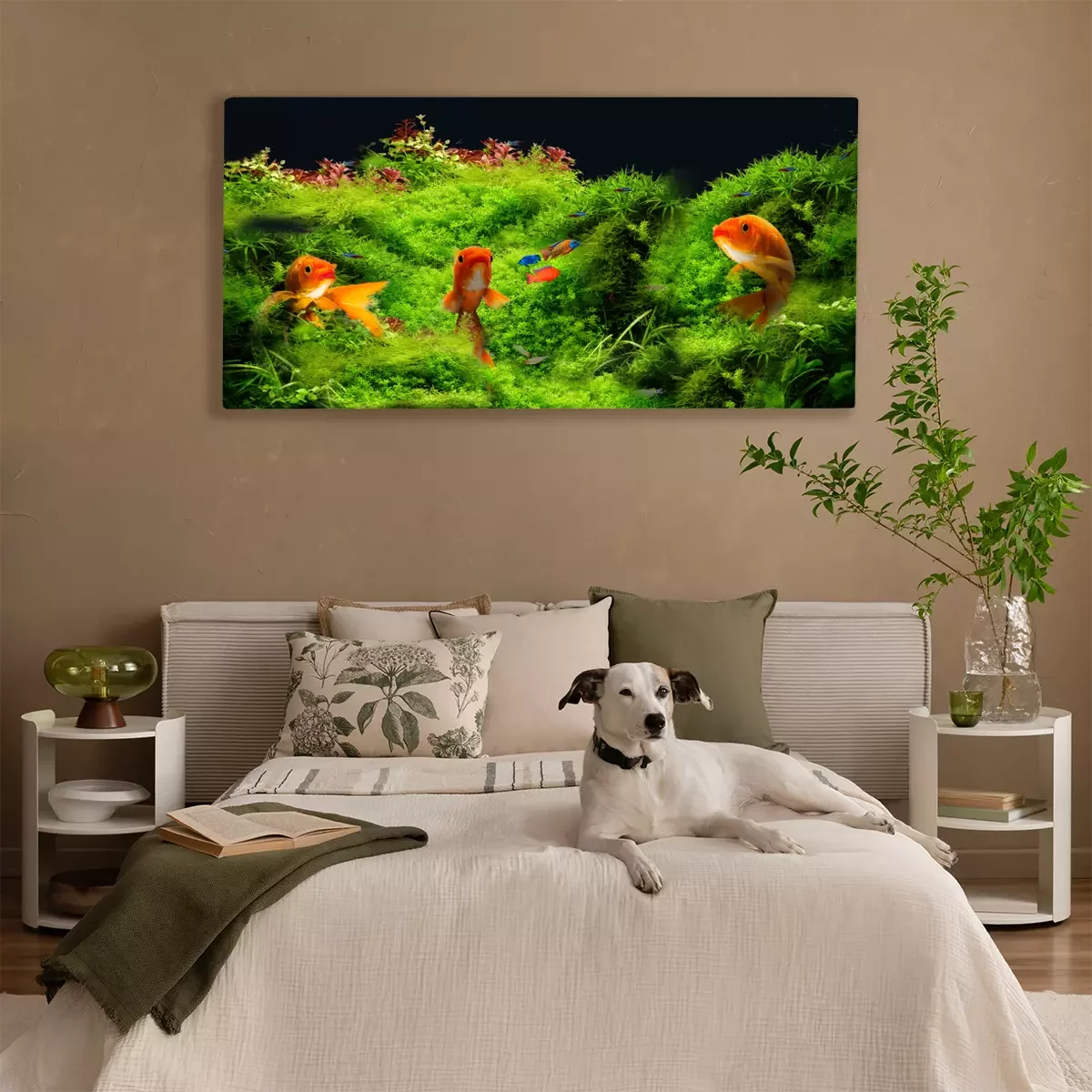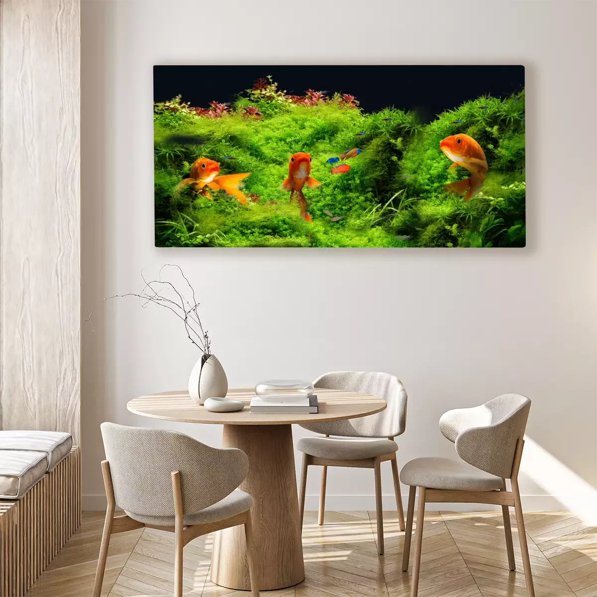 Goudvis tegen een achtergrond van onderwatergroene planten